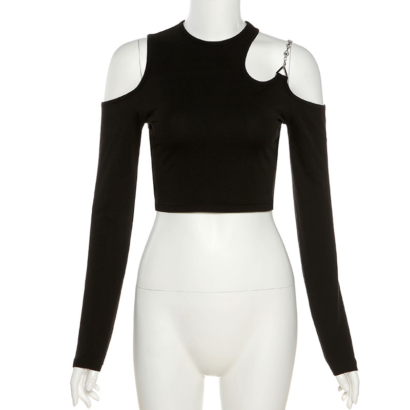 Главная страница > European Station 2022 Уличная Мода, осенняя Новая женская облегающая Сексуальная короткая футболка с открытыми плечами и длинными рукавами и круглым вырезом для женщин
