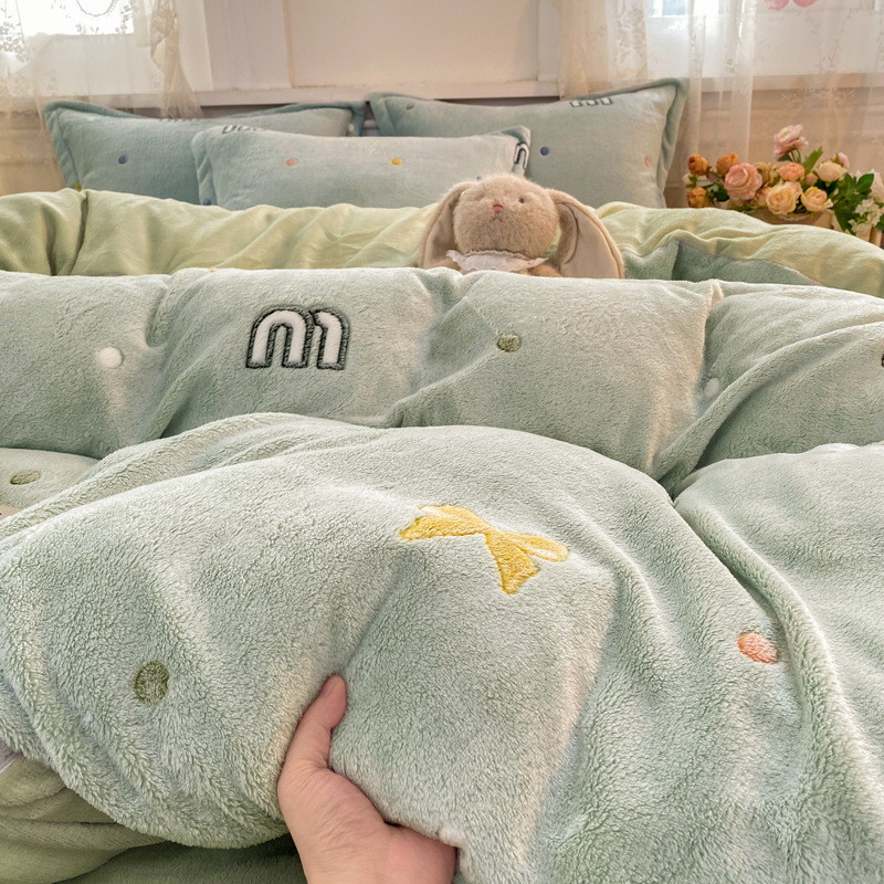Главная страница > 25, осенне-зимний бархатный комплект из четырех предметов со снежинками, утолщенное пододеяльник на флисовой подкладке, студенческое общежитие, молочные бархатные простыни, фланелевое одноместное пододеяльник