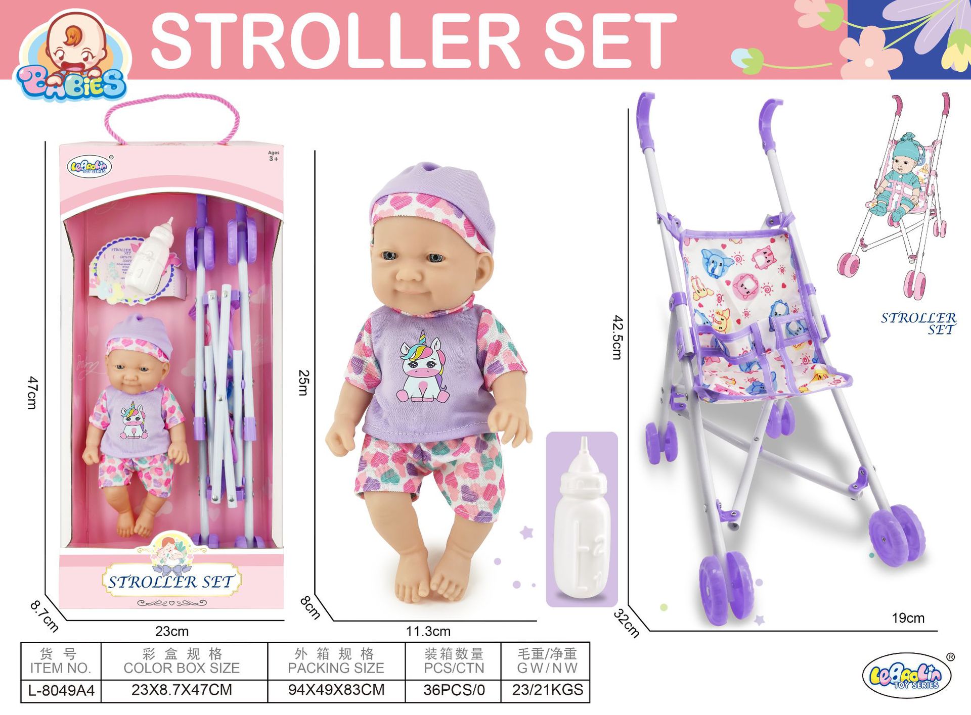 Новинка 10inch года, виниловая кукла для новорожденных, погремушка, бутылочка, соска, коляска