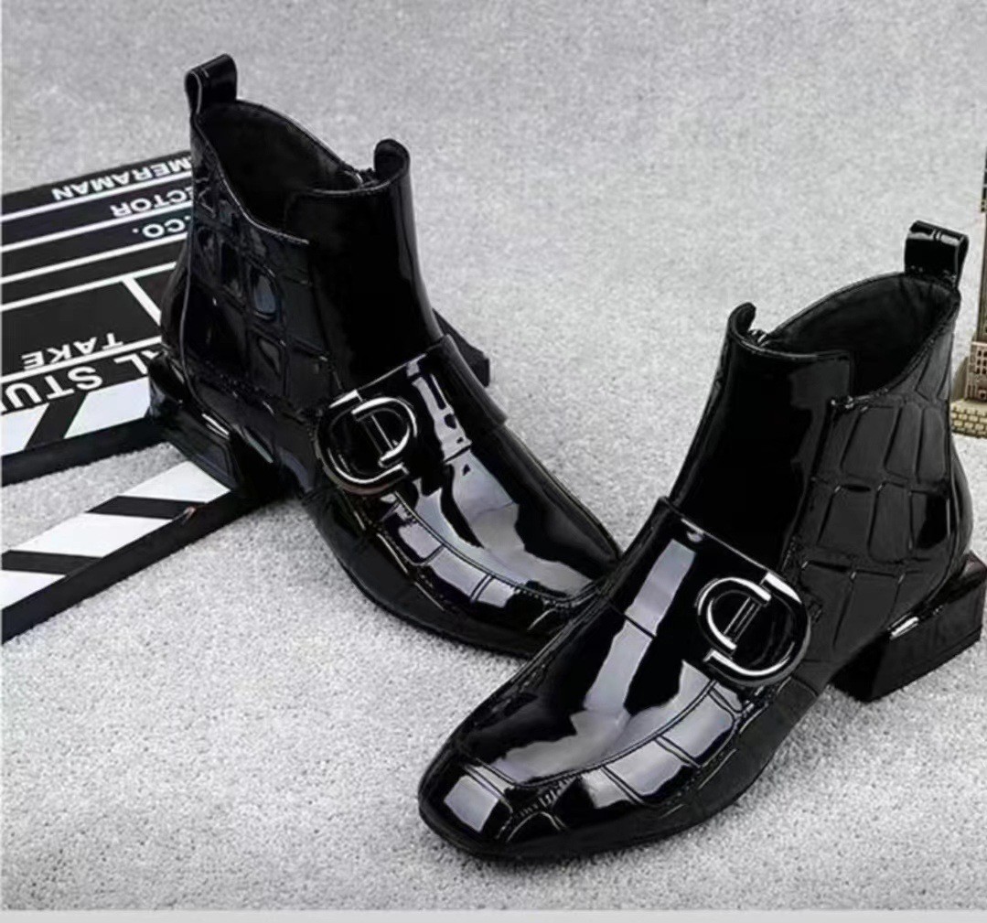 Главная страница > Новые короткие женские сапоги из лакированной кожи, модные сапоги, женская обувь, плоская боковая молния на флисовой подкладке, большие размеры, Женские Британские ветрозащитные сапоги