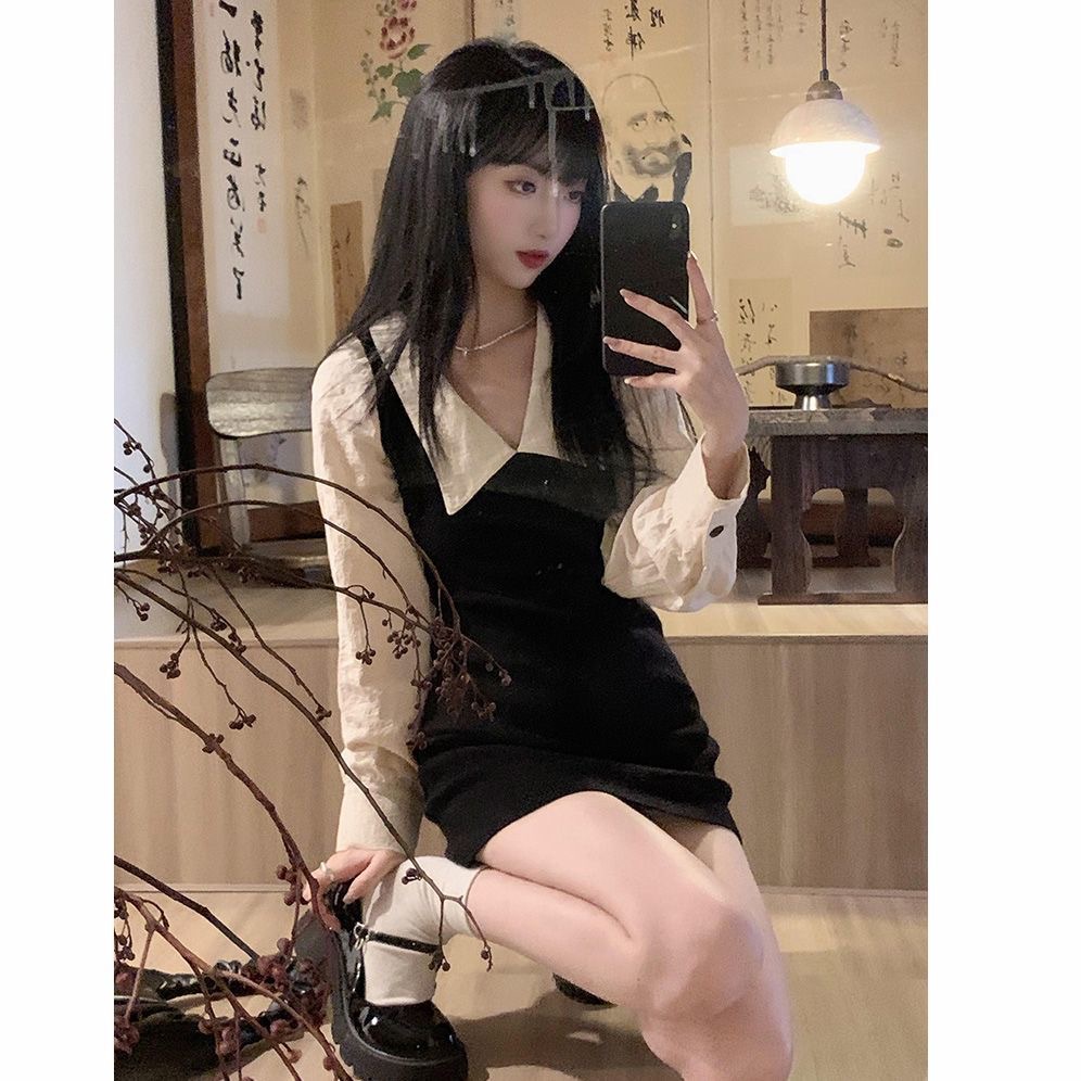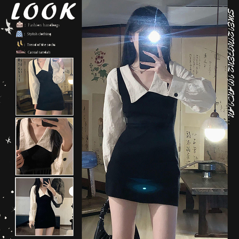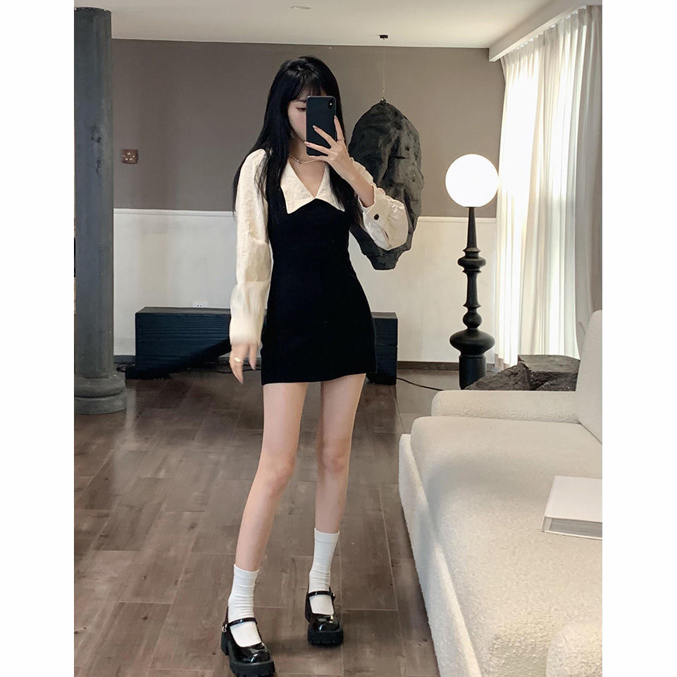 Главная страница > Ранняя осень корейское платье с лацканами в студенческом стиле Pure Desire, маленькая новая элегантная тонкая юбка с высокой талией для детей
