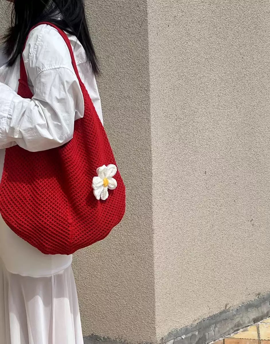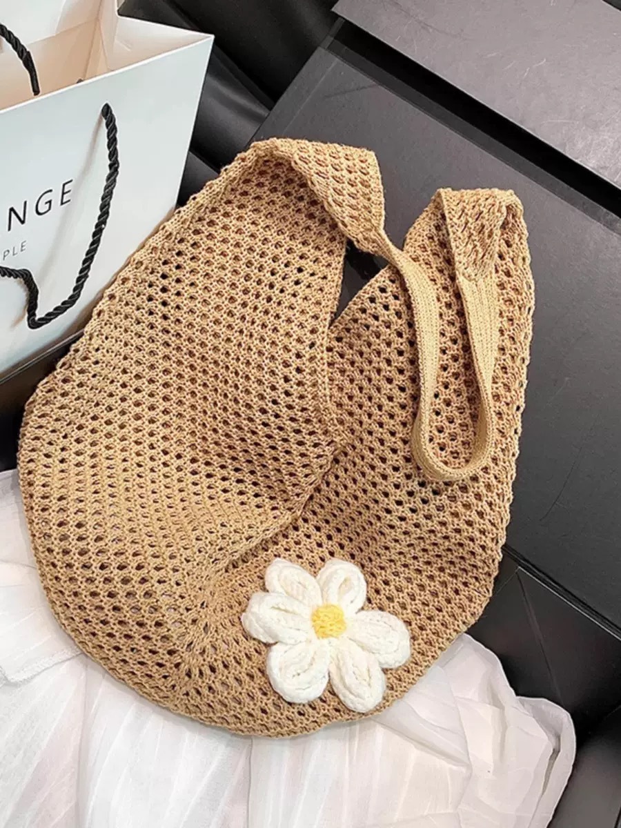 Главная страница > Корейская версия 2025 года, новая праздничная тканая сумка, женская сумка через плечо, вязаная пляжная сумка с полым цветком в ленивом стиле