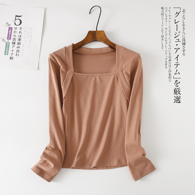 Главная страница > Женская футболка с кленовым краем, Винтажная футболка в западном стиле с длинными рукавами и имитацией двух частей, кирпичная красная квадратная основа с воротником