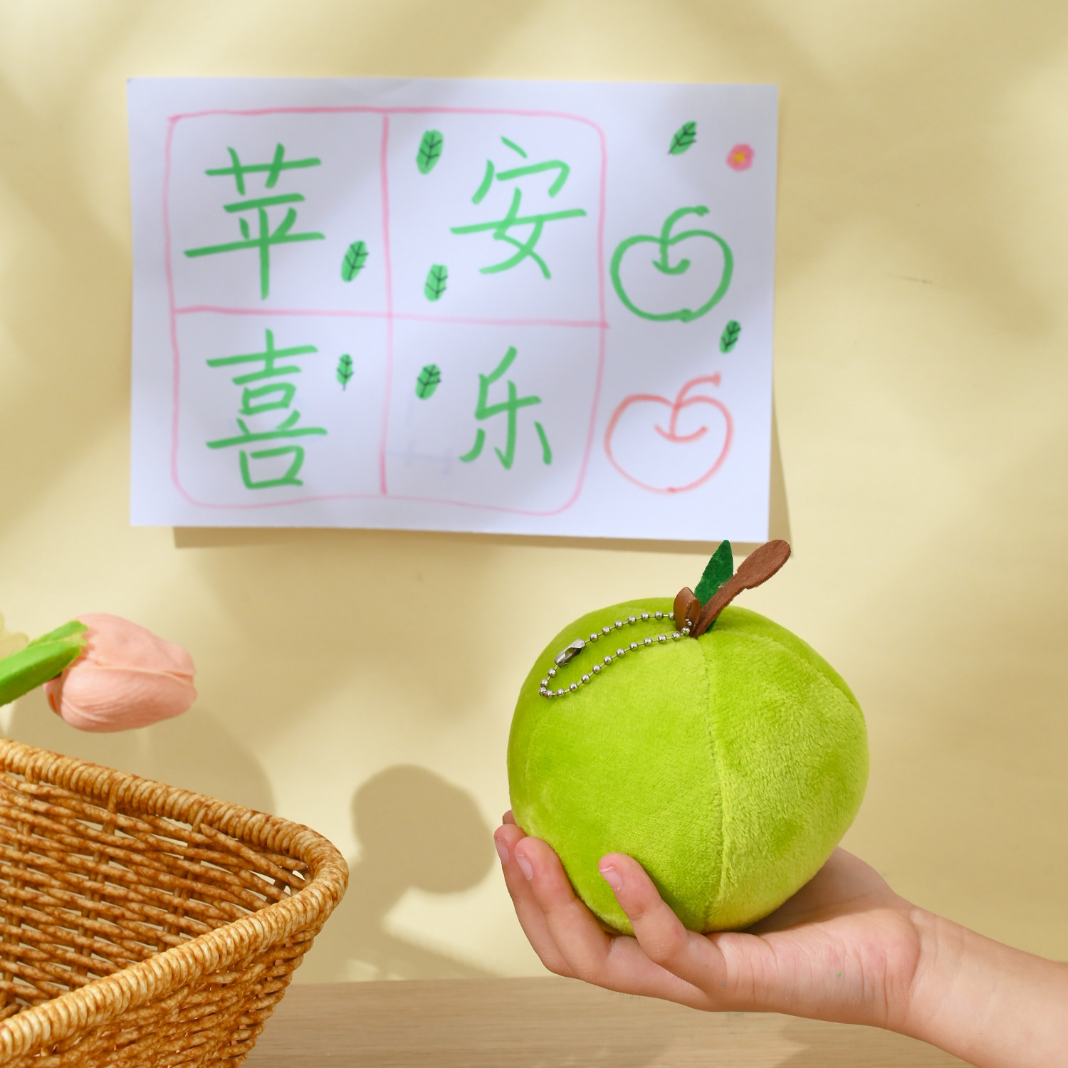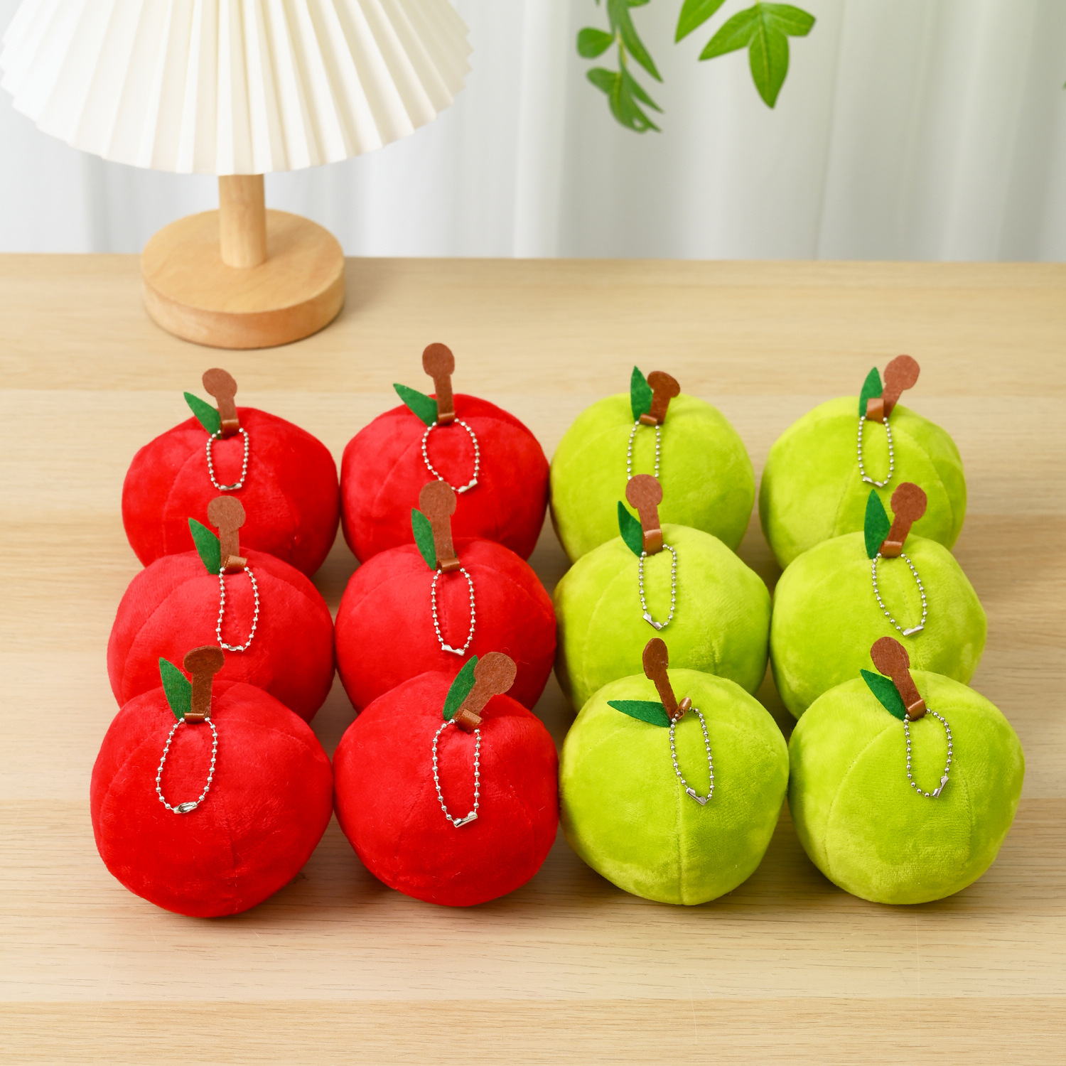 Плюшевое зажатое зеленое яблоко + бесплатная цепочка из бусин