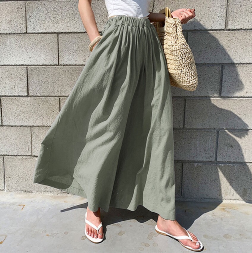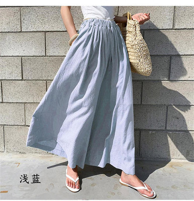 Главная страница > Летние женские брюки в корейском стиле 2025 года: однотонные льняные широкие брюки, повседневные длинные брюки для женщин