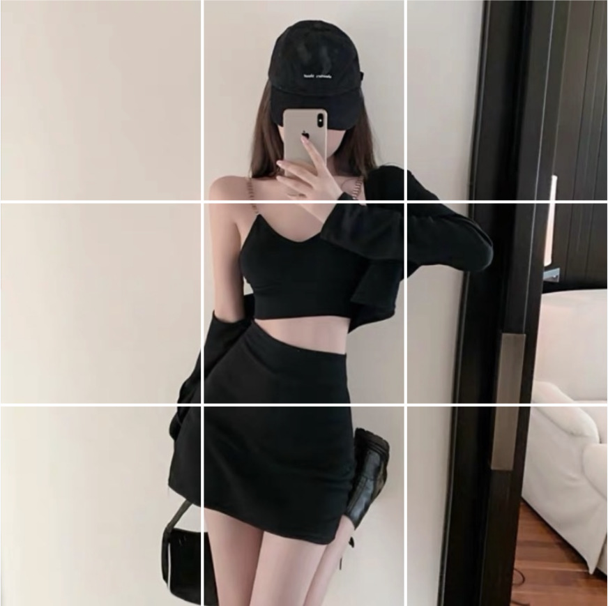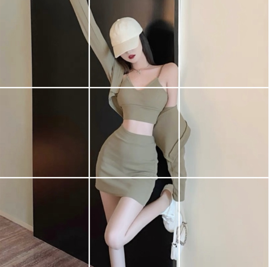 Главная страница > Весенне-летний Кардиган с длинным рукавом + камзол с цепочкой + юбка-накидка с высокой талией и бедрами, Женский комплект из трех предметов 8785