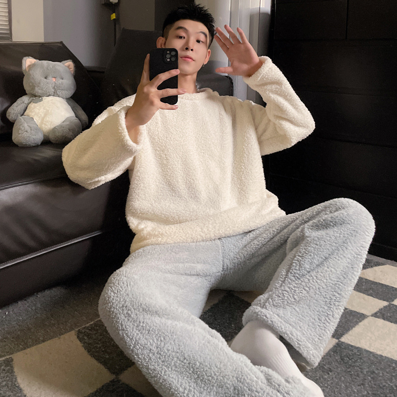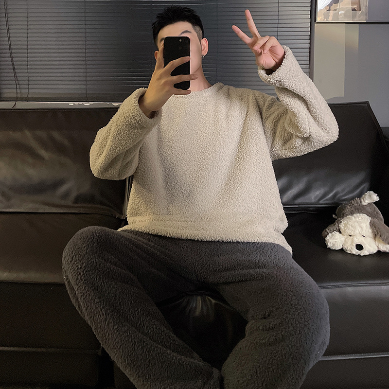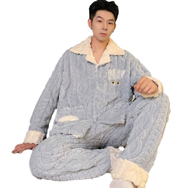 Главная страница > Мужская пижама осенне-зимняя утолщение, бархатный коралловый бархат большого размера 200 кг подростковый фланелевый набор домашней одежды