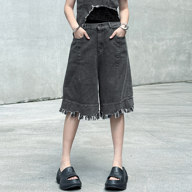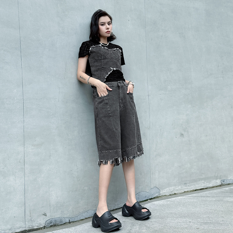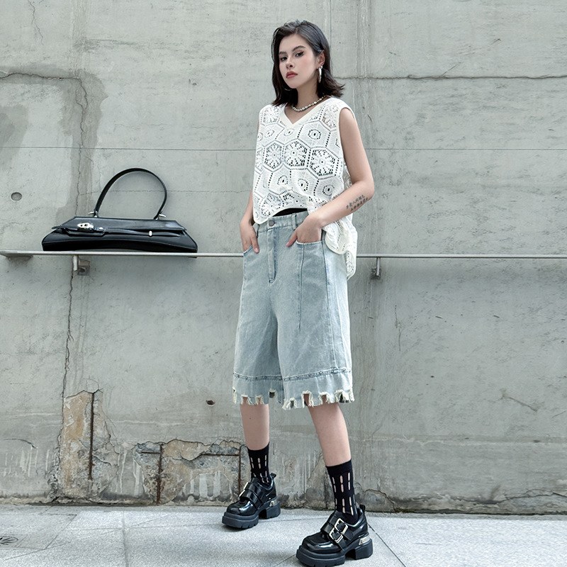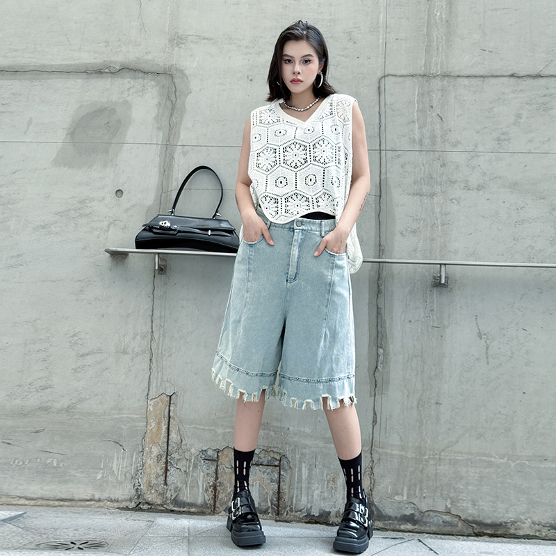 Главная страница > Женские джинсовые шорты в американском стиле, с высокой талией, в ретро-стиле, новая летняя нишевая модель, повседневные широкие брюки.