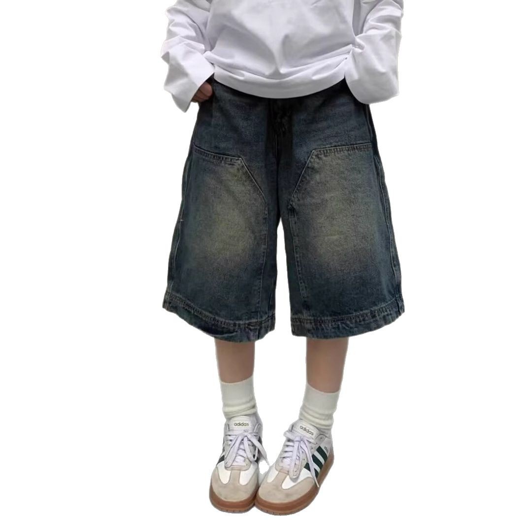 Женские джинсовые шорты из стираной рабочей одежды, летние тонкие американские уличные универсальные свободные прямые спортивные шорты средней длины с 7 точками