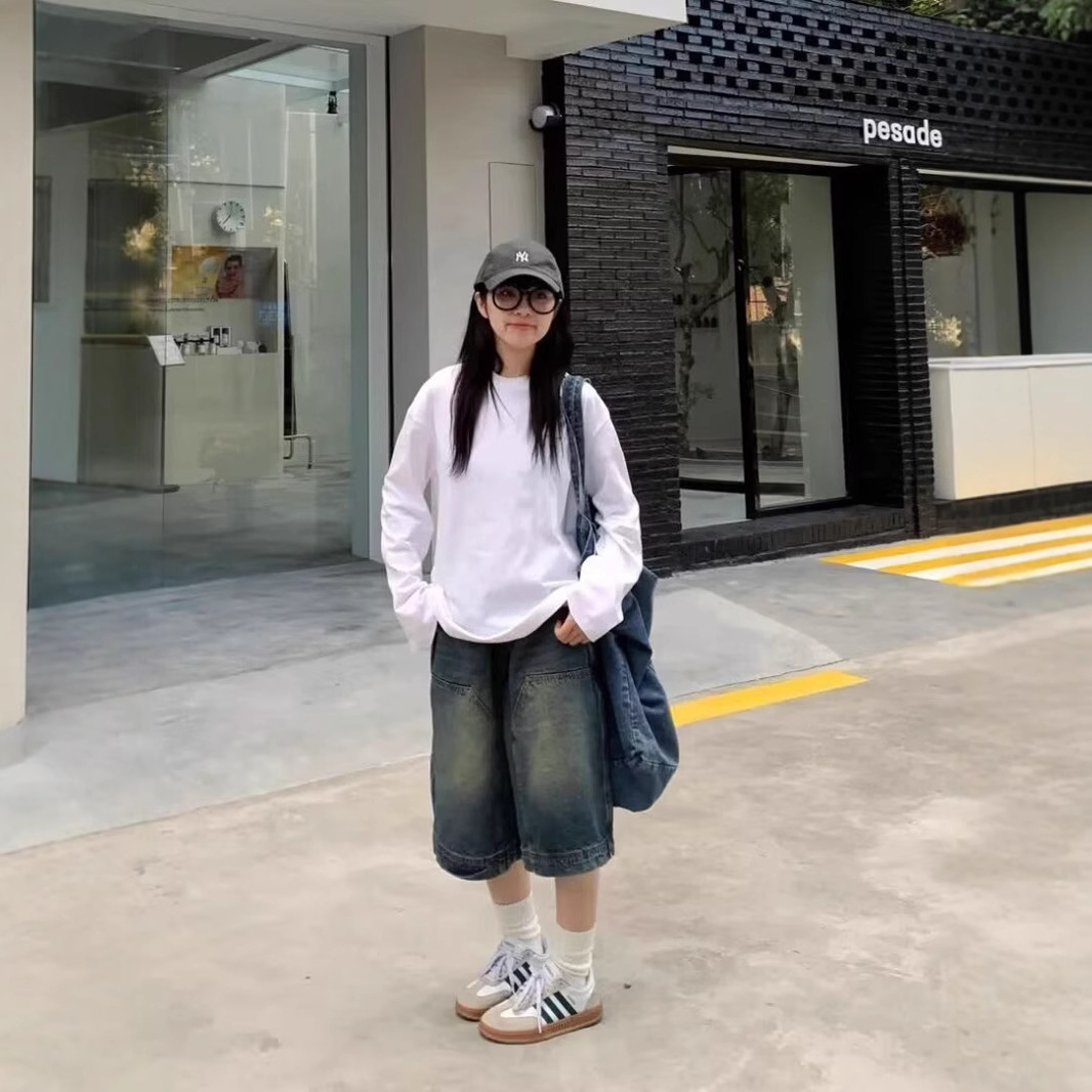 Главная страница > Женские джинсовые шорты из стираной рабочей одежды, летние тонкие американские уличные универсальные свободные прямые спортивные шорты средней длины с 7 точками