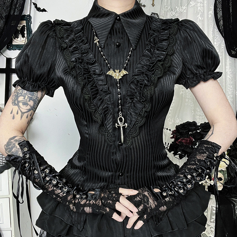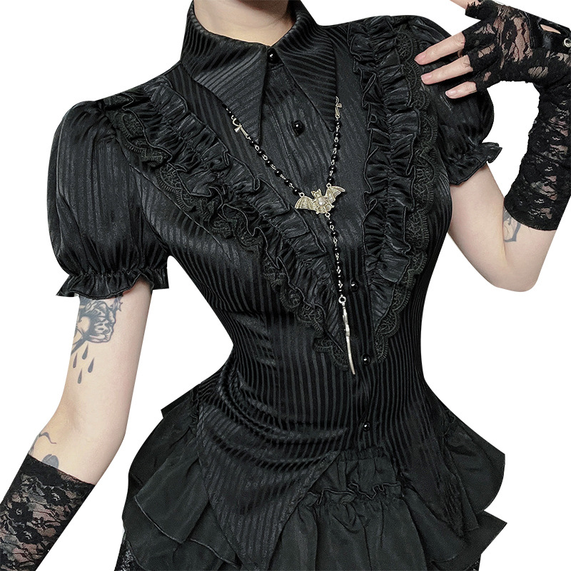 CF25110 Темный готический стиль ледяной полосатый атласная рубашка 2025 новый сексуальный тонкая девушка топ женский