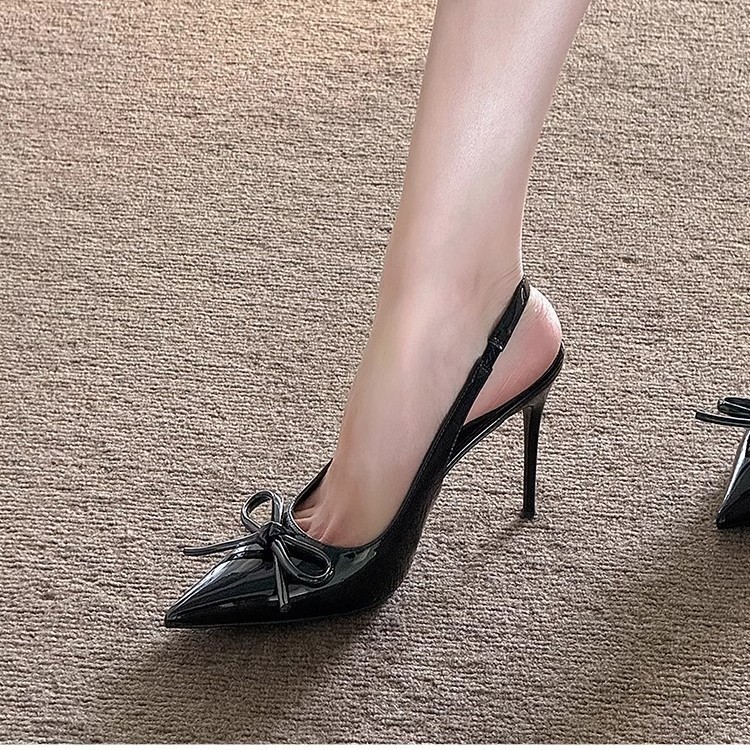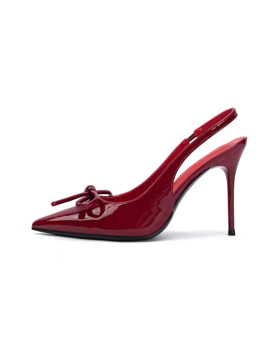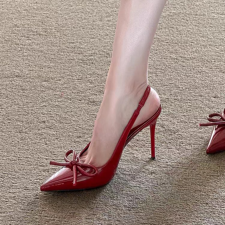 Главная страница > 2025 весна и лето новый винно-красный лакированный кожаный туфли на высоком каблуке женский лук с заостренной головой