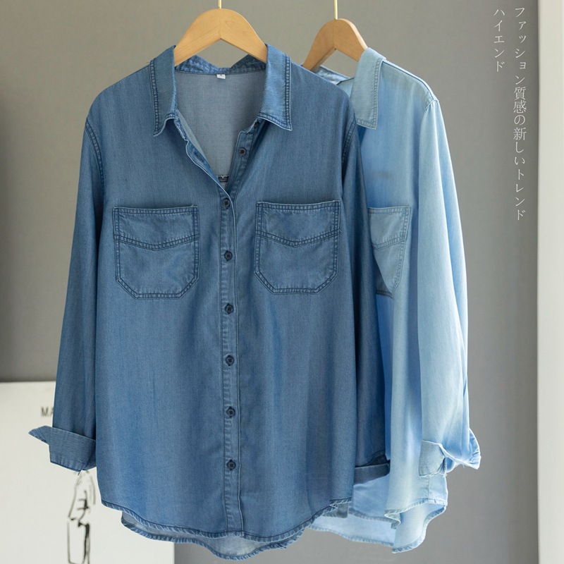 Главная страница > Японский стиль, тонкая драпированная хлопковая джинсовая рубашка Tencel, женская дизайнерская ниша, свободная универсальная многослойная рубашка, весна