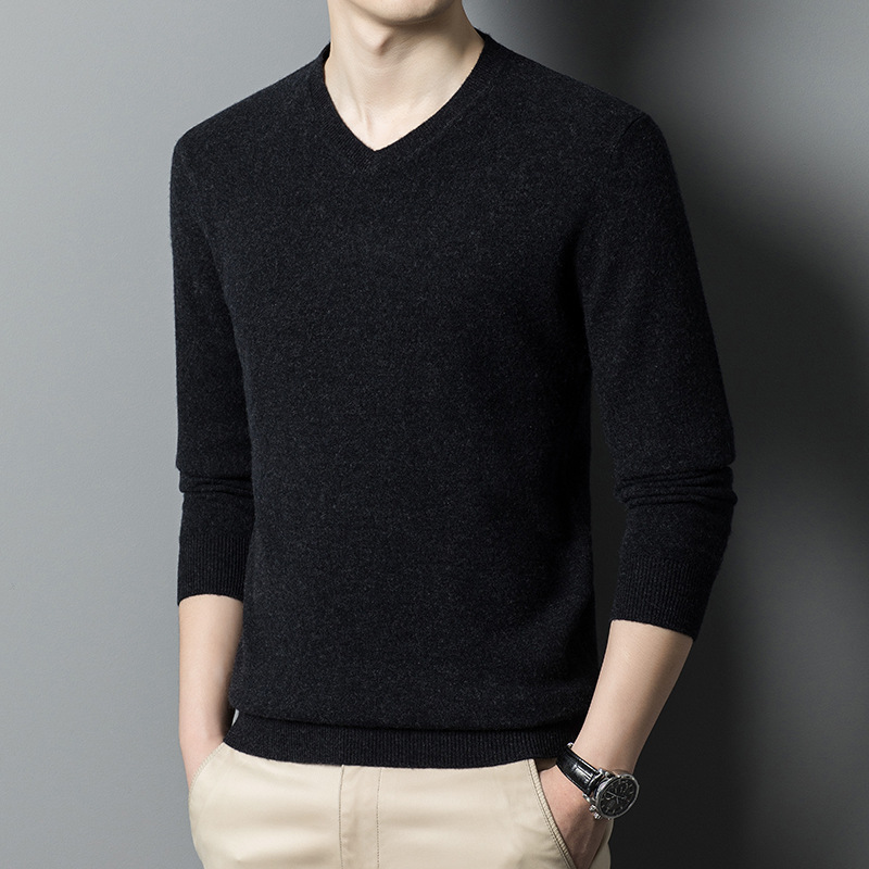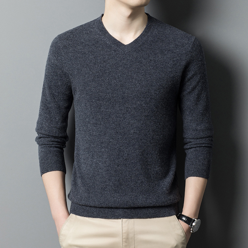 Главная страница > Прямая поставка с фабрики, осенне-зимний новый кашемировый свитер, мужской Однотонный свитер с V-образным вырезом, базовый свитер среднего возраста, утепленный свитер для мужчин