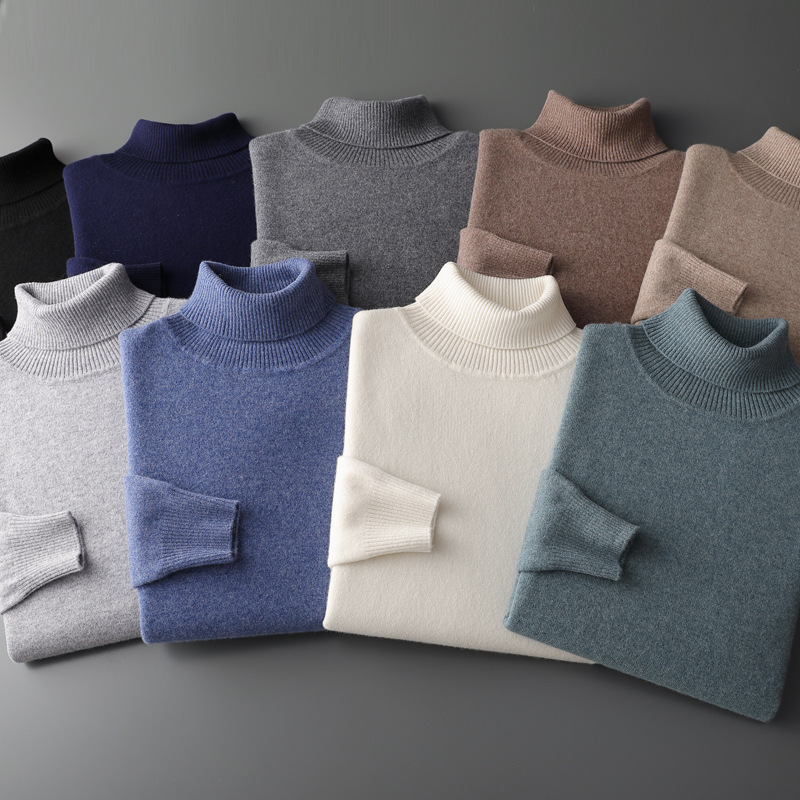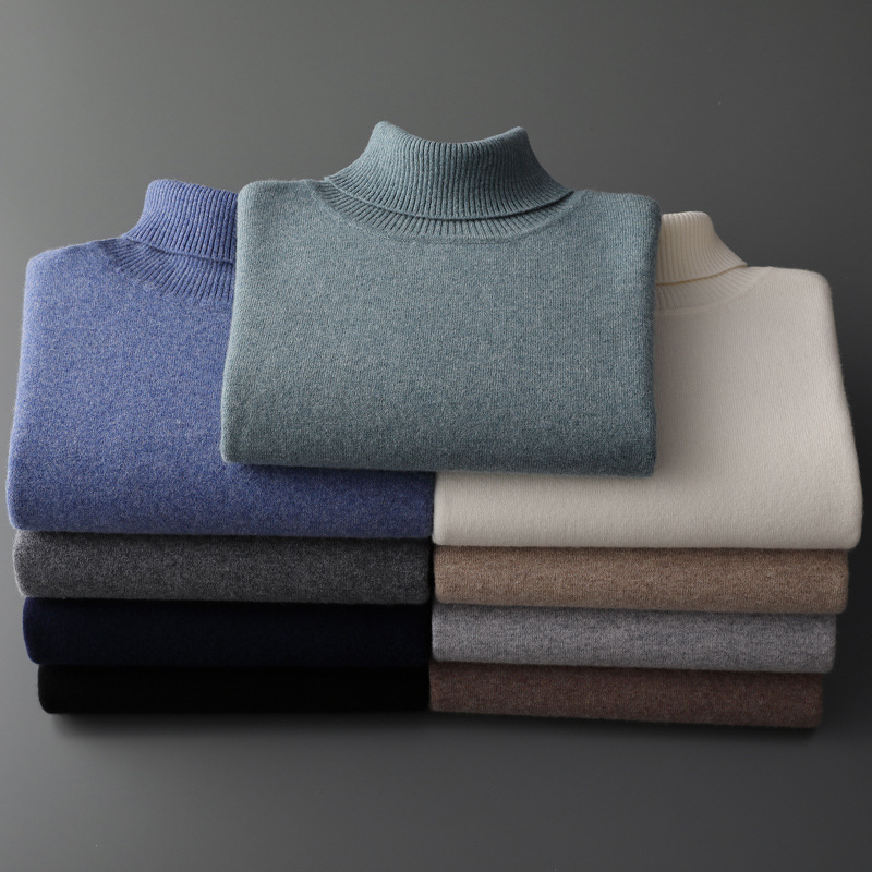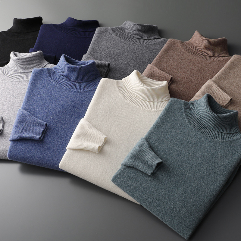 Главная страница > Новый осенне-зимний свитер из 100 шерстей, Мужской Свободный пуловер с высокими лацканами, повседневный Однотонный свитер, вязаная Базовая рубашка
