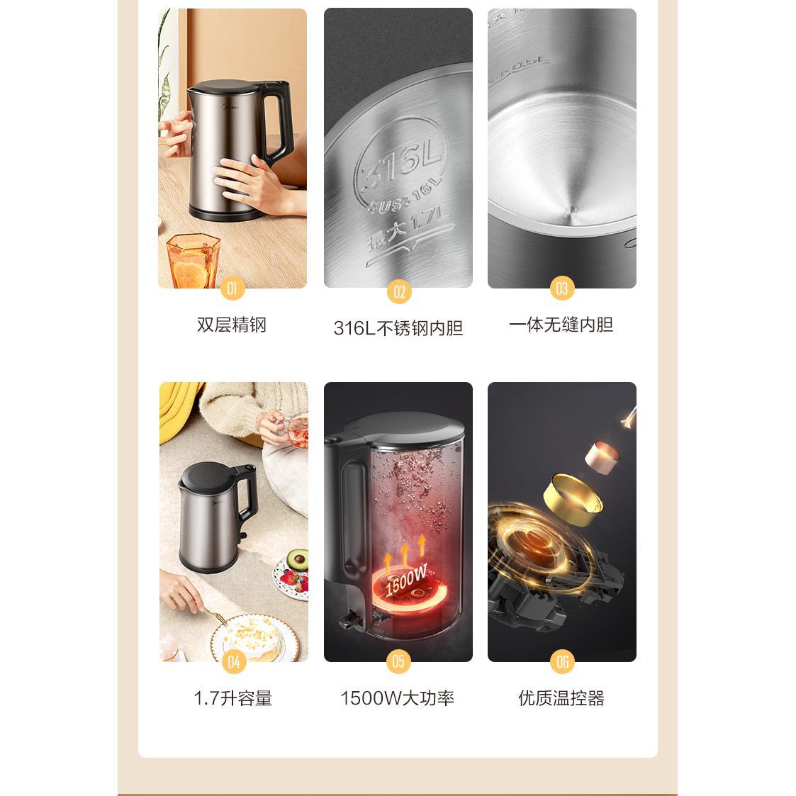 Midea/Midea MK-PJ17A01 электрический чайник бытовой из нержавеющей стали 316 с автоматическим отключением питания, чайник с защитой от ожогов