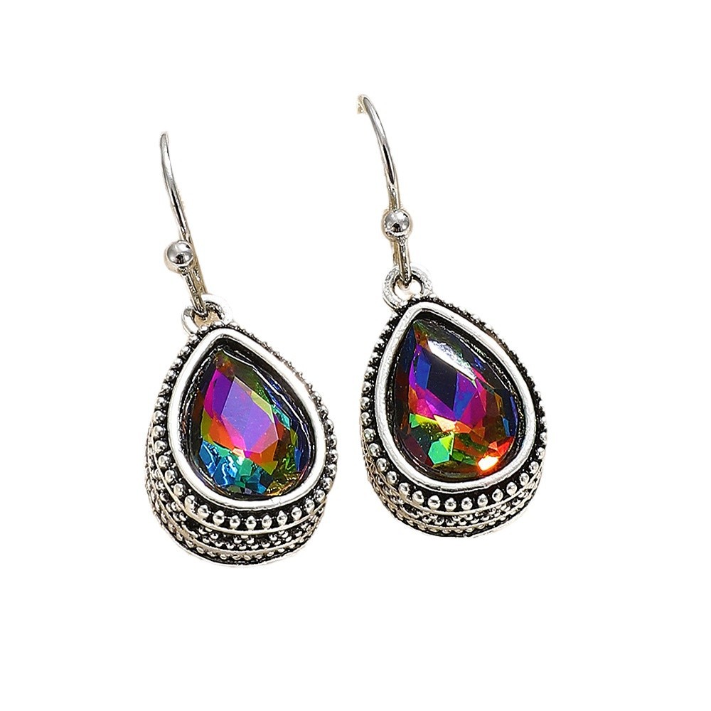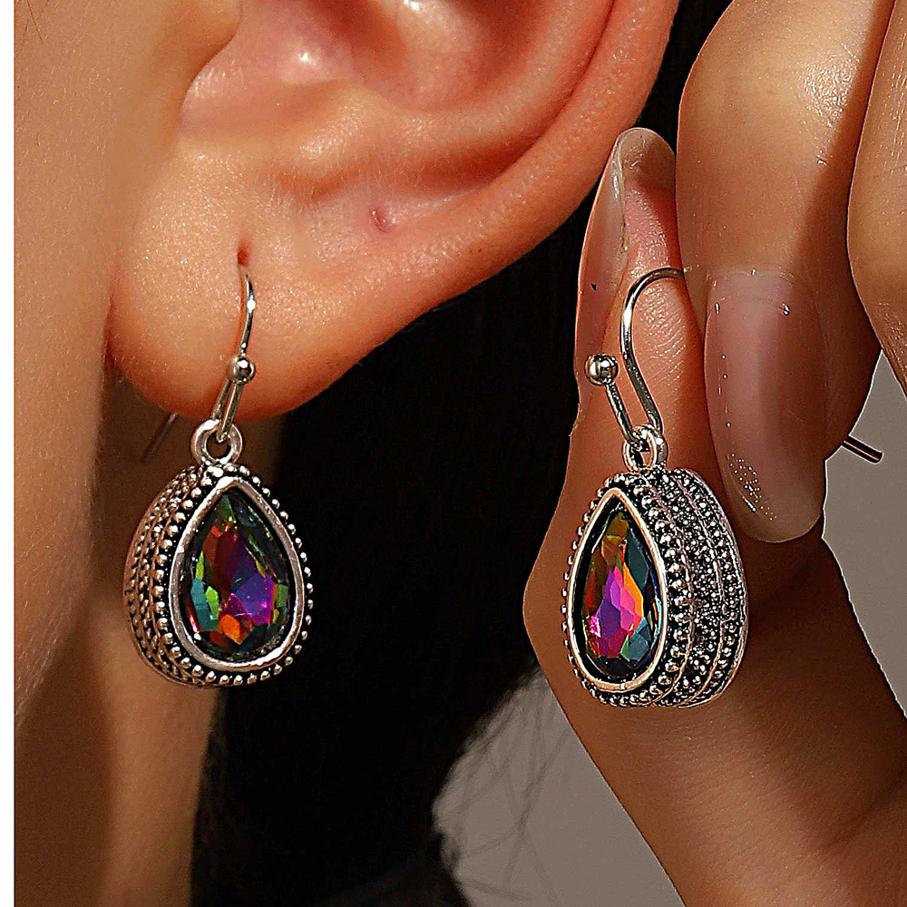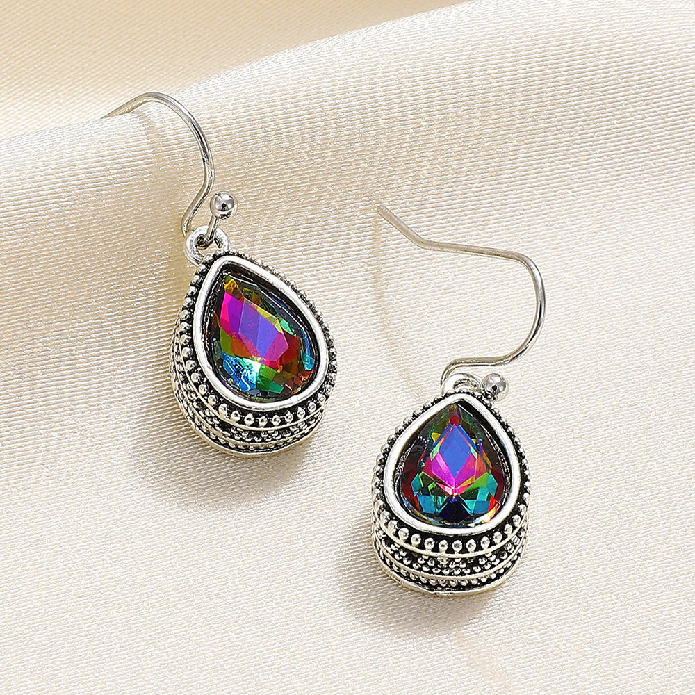 Европейская и американская трансграничная мода ретро цветные капли воды хрустальные серьги изысканные дикие женские серьги