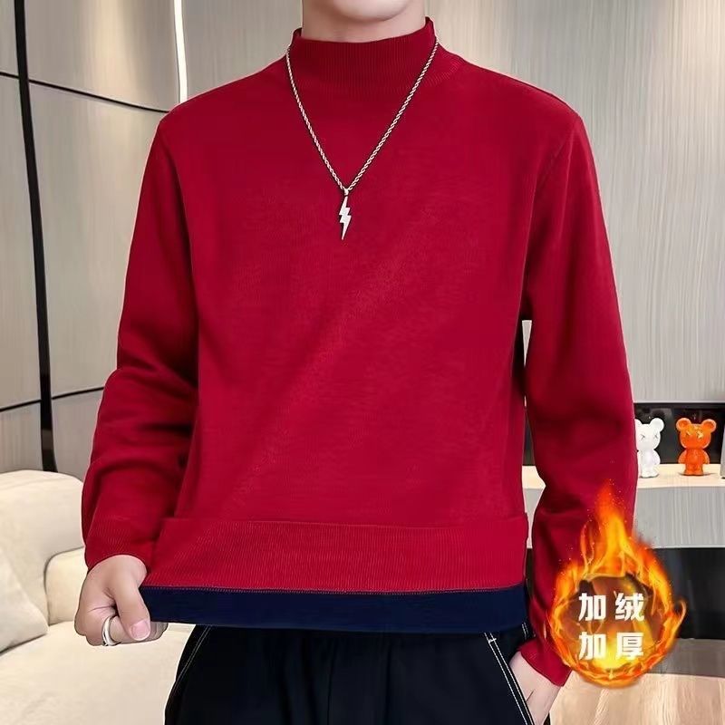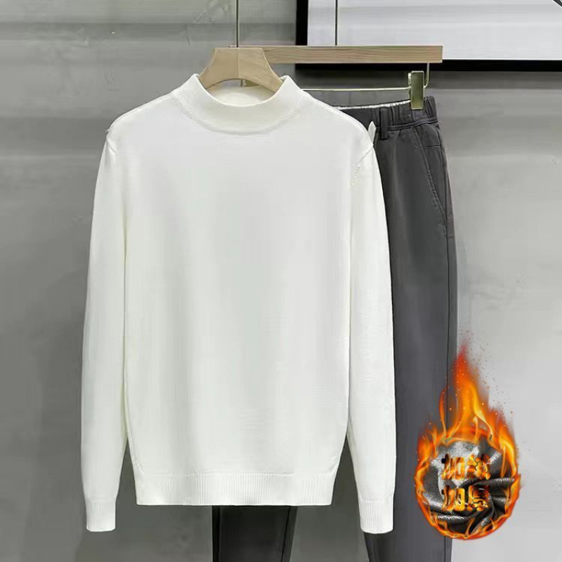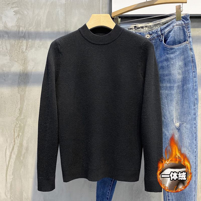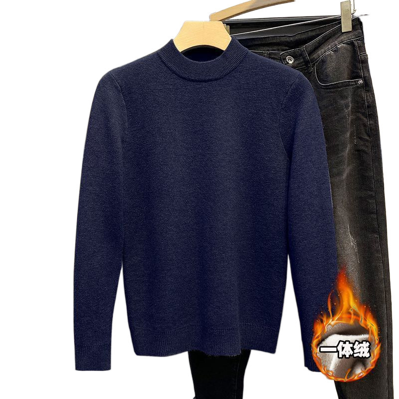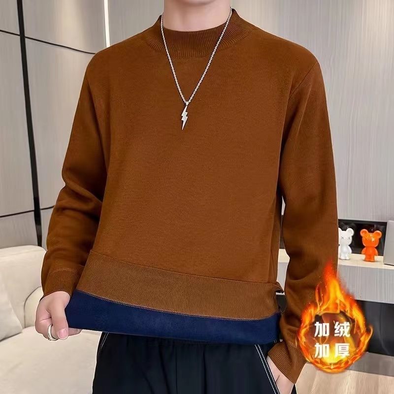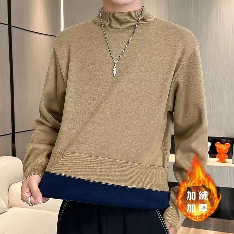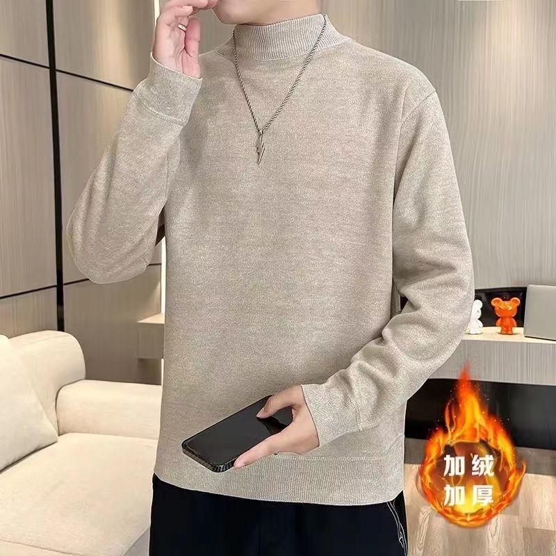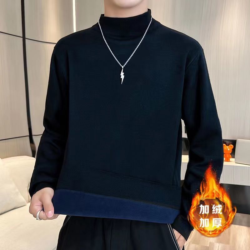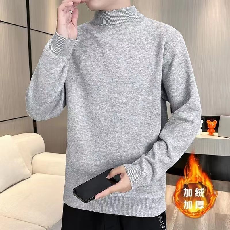 Главная страница > Мужской свитер с полугольфом на флисовой подкладке, утолщенный на осень и зиму, однотонный, студенческий базовый слой, модный мужской трикотаж.