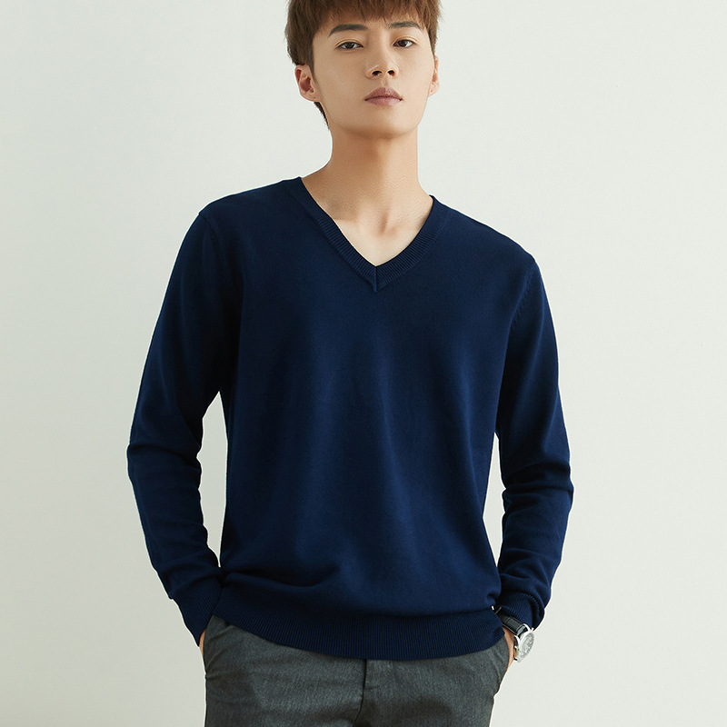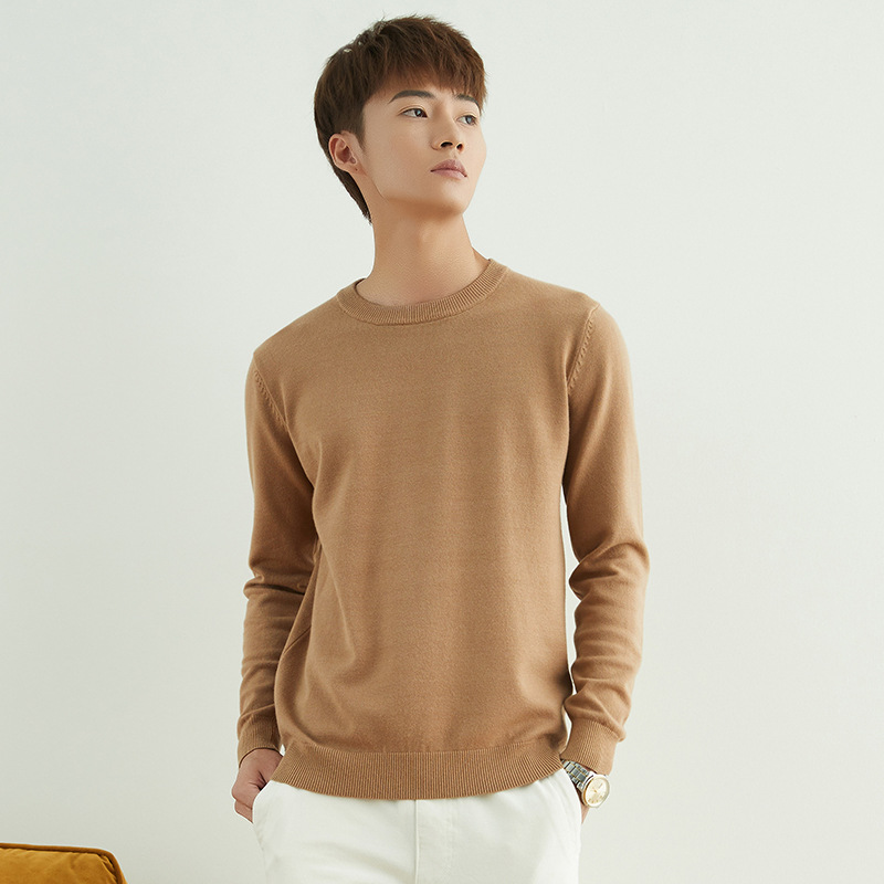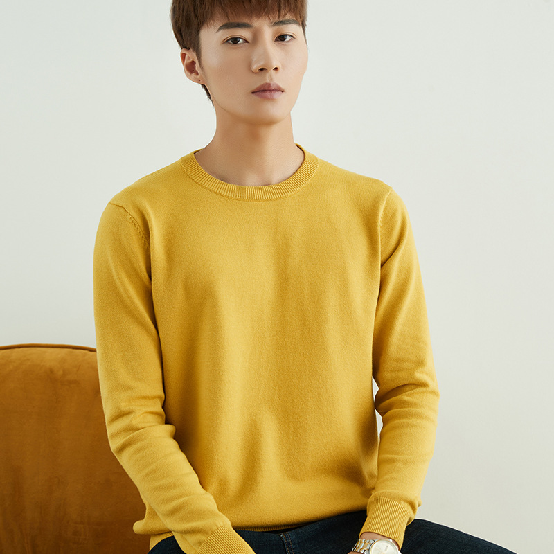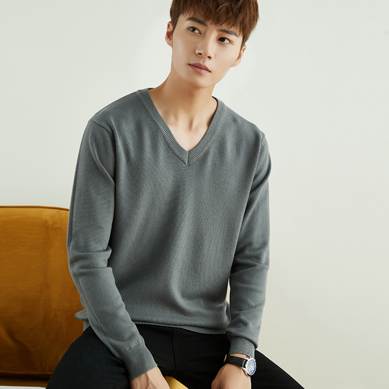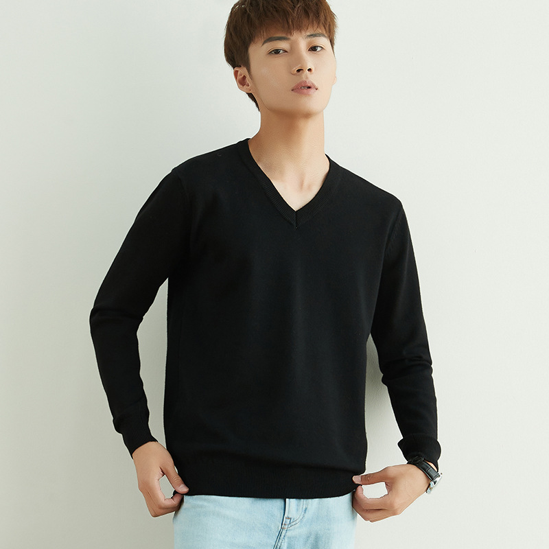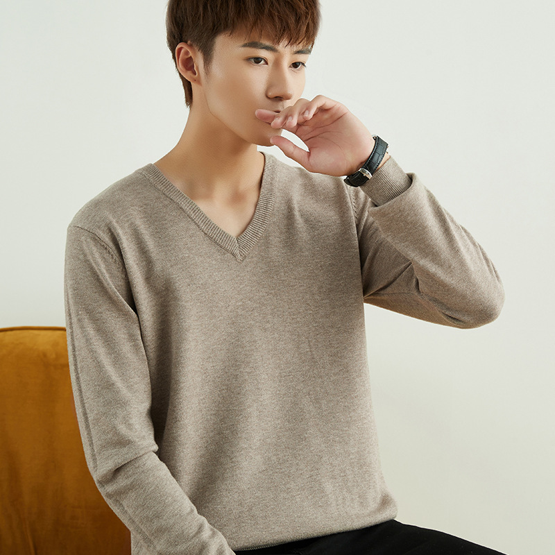 Главная страница > Мужской повседневный свитер на осень и зиму, свитер с круглым вырезом, утолщенный свободный пуловер, однотонный флисовый свитер, мужская трикотажная базовая одежда с V-образным вырезом.