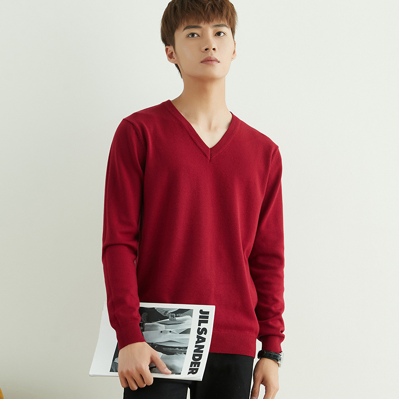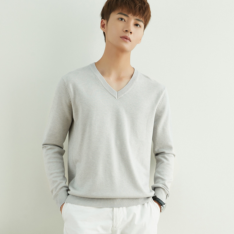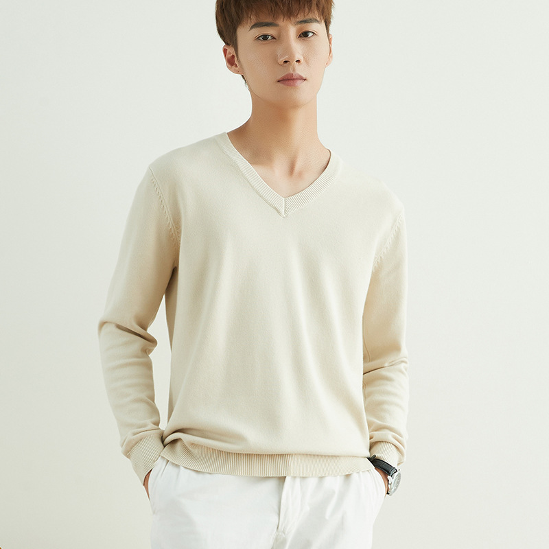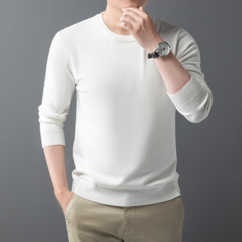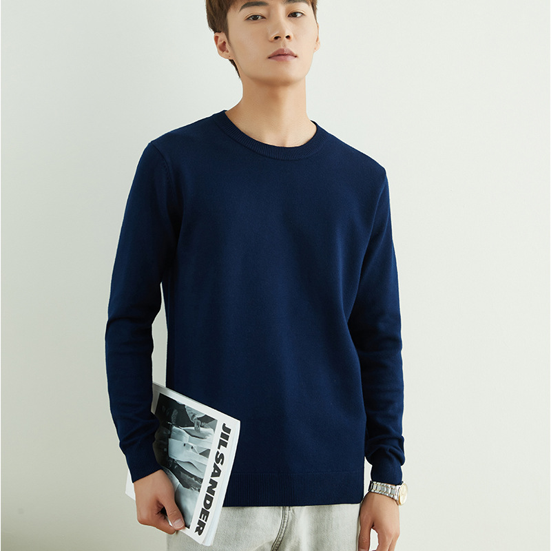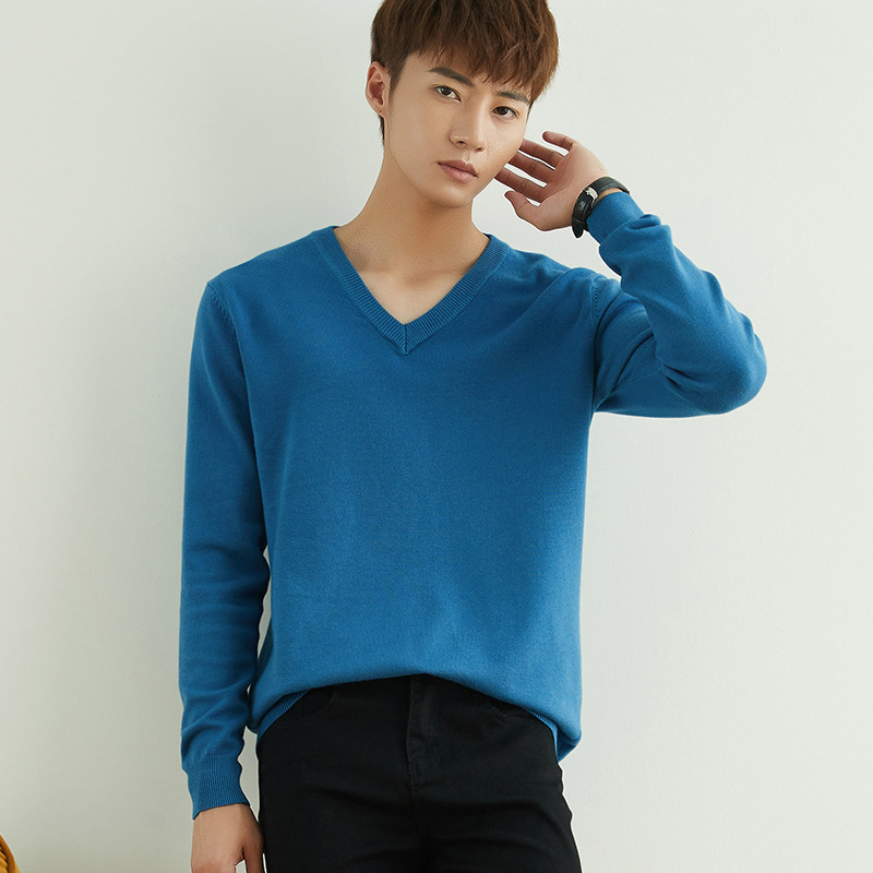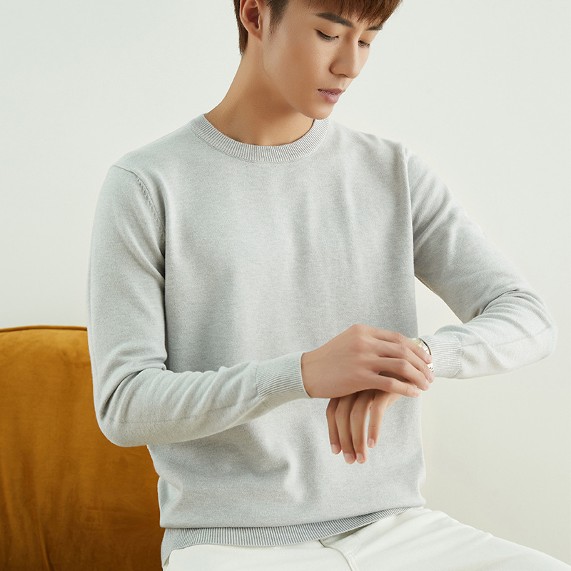 Главная страница > Мужской повседневный свитер на осень и зиму, свитер с круглым вырезом, утолщенный свободный пуловер, однотонный флисовый свитер, мужская трикотажная базовая одежда с V-образным вырезом.