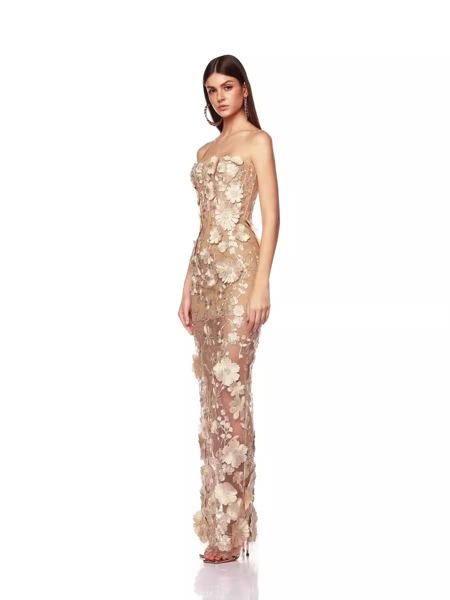 Французское легкое экстравагантное трехмерное цветочное платье-трип-грудь осень 2024