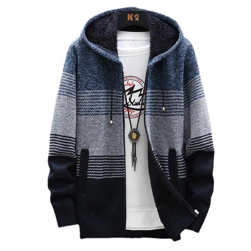 Главная страница > Весна Осень Зима Кардиган Свитер Мужской с капюшоном плюс Размер на флисовой подкладке Толстый Модный Цвет-блок Вязаное пальто с капюшоном Прохладный
