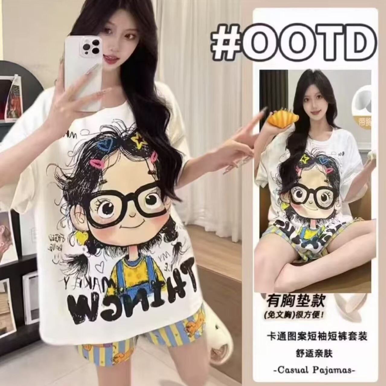 Главная страница > Новые летние модные популярные пижамы с накладками на груди для женщин, с короткими рукавами и длинными брюками, летняя домашняя одежда, комплект из облачного хлопка для верхней одежды.