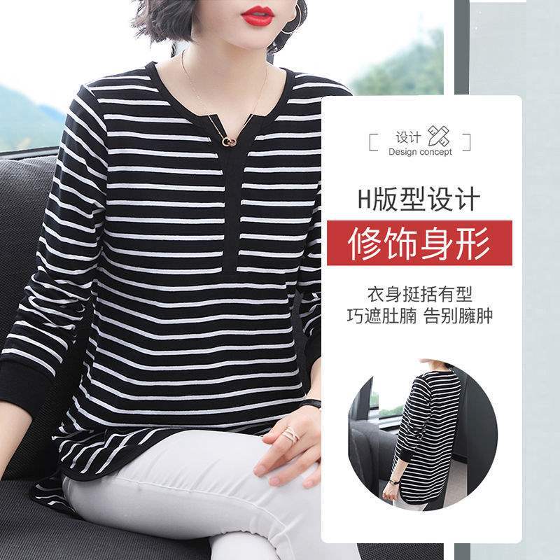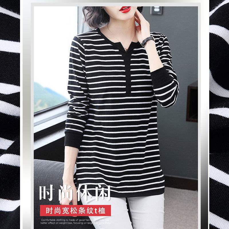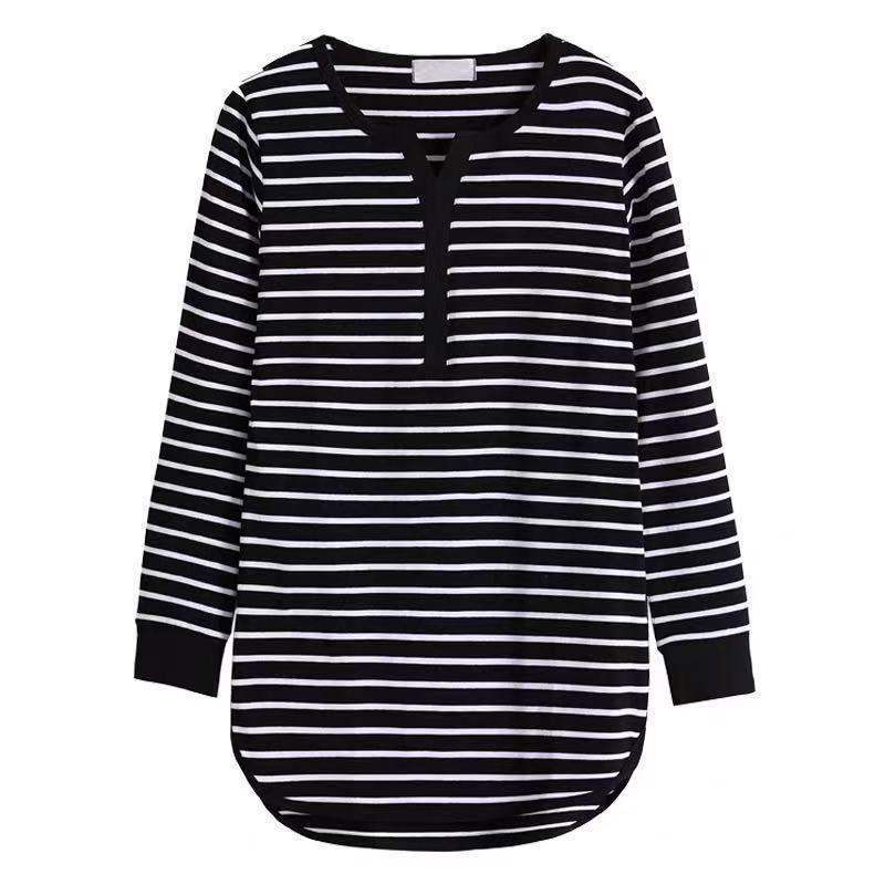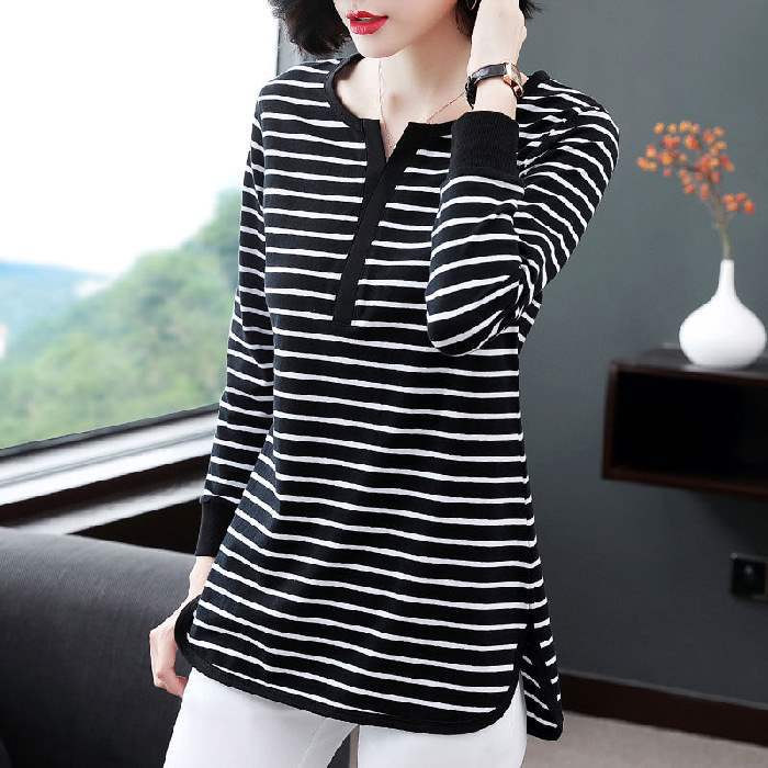 Главная страница > 2024 новая полосатая женская футболка с длинными рукавами, свободная универсальная базовая рубашка средней длины в корейском стиле больших размеров для женщин, модная