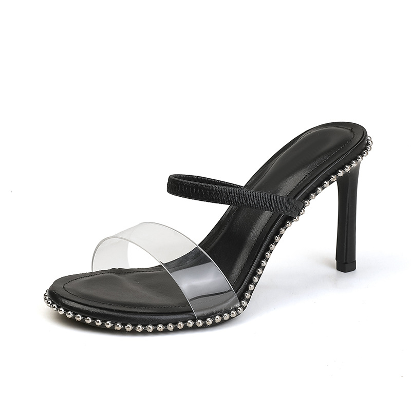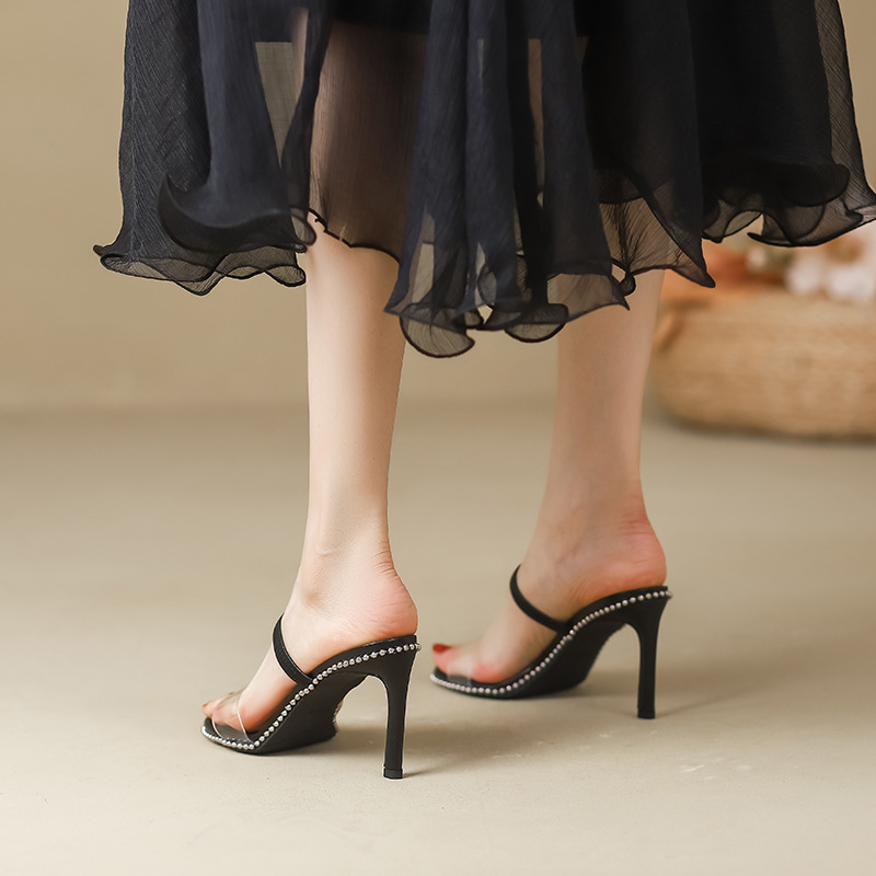 Главная страница > Прозрачные женские босоножки со стразами, новинка лета 2023, сексуальные туфли на высоком каблуке с открытым носком на шпильке с пустой спинкой и внешними сандалиями
