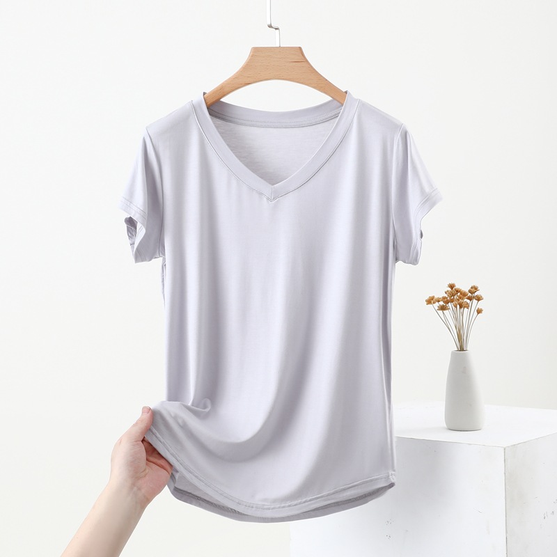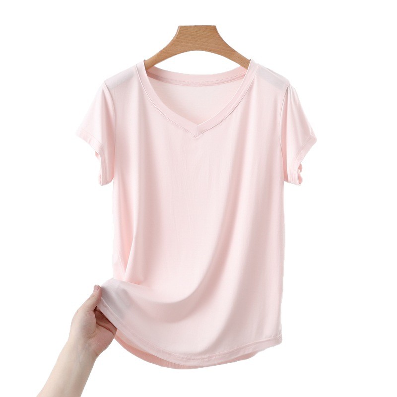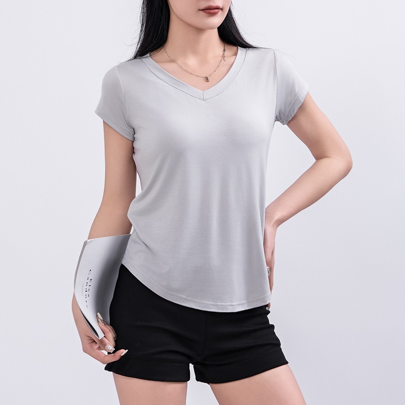 Женская белая футболка Youkesi с коротким рукавом, лето 2025, свободного кроя, утягивающая, нишевая, с V-образным вырезом и маской.