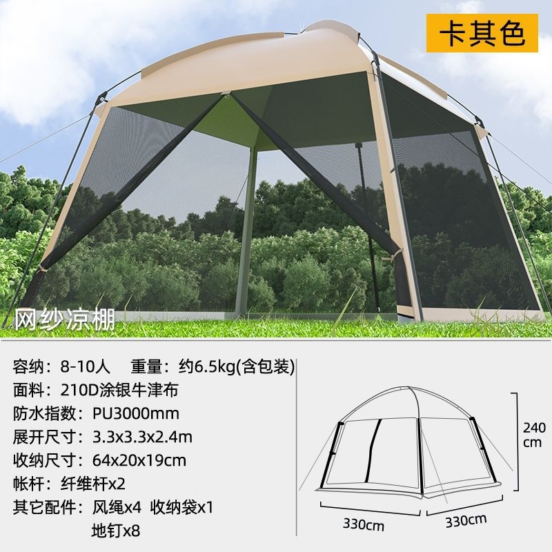 Сетчатая палатка для кемпинга на открытом воздухе для нескольких человек, интегрированный пляжный кемпинг для барбекю, защита от солнца, средство от комаров, портативный солнцезащитный козырек.