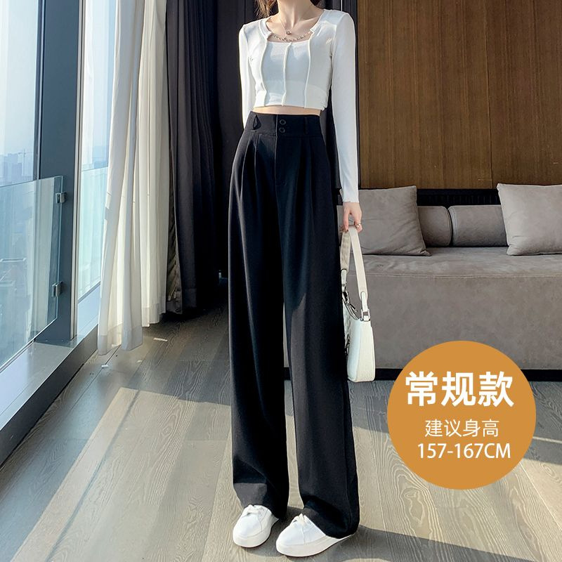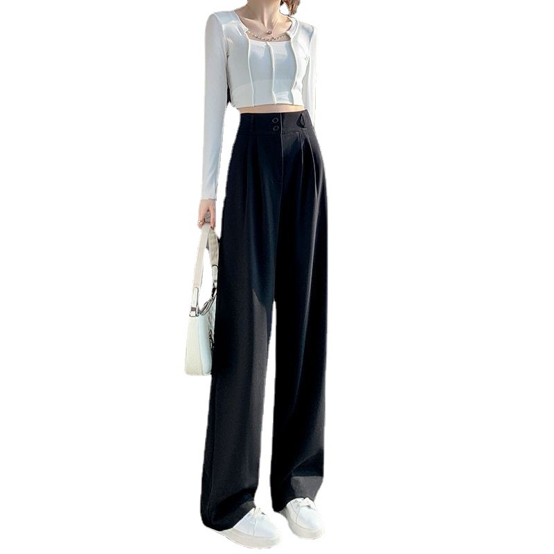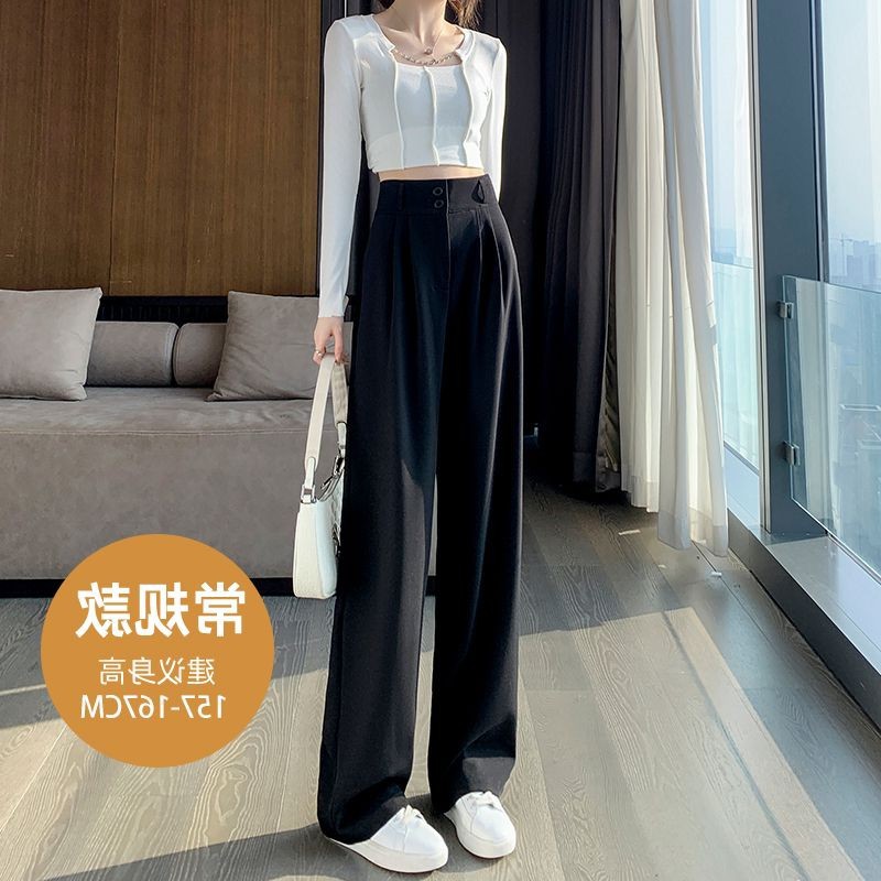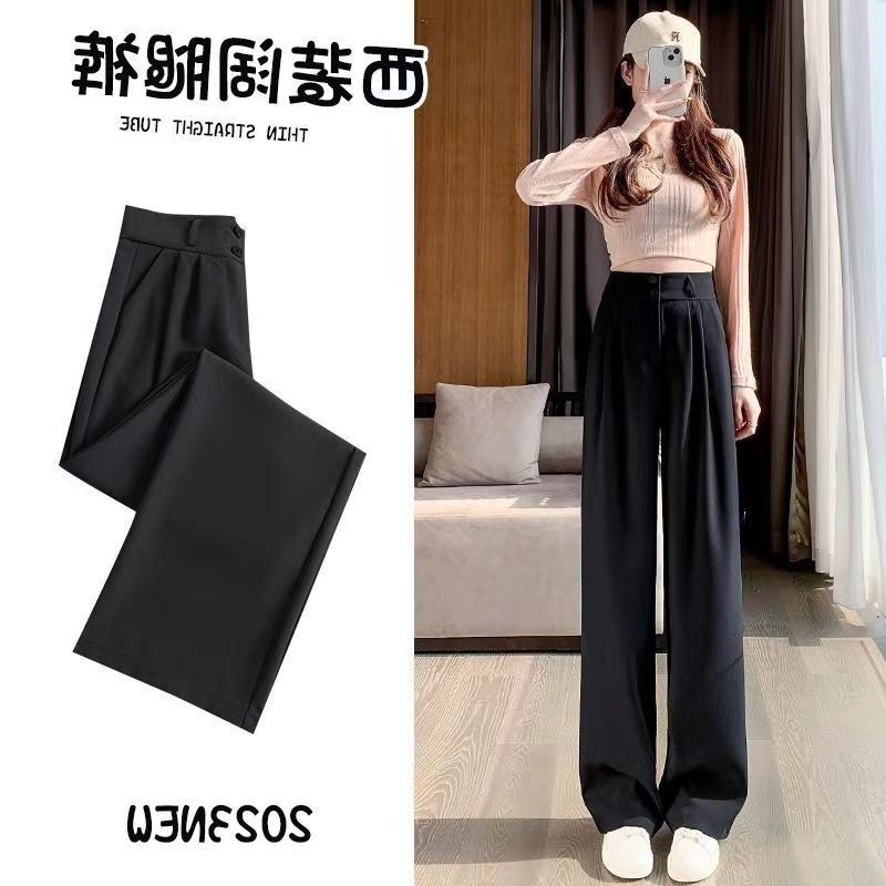 Главная страница > Женские широкие брюки на весну и осень, утягивающие брюки с высокой талией и драпировкой грушевидной формы, прямые брюки со шваброй, повседневные брюки с двойной пряжкой