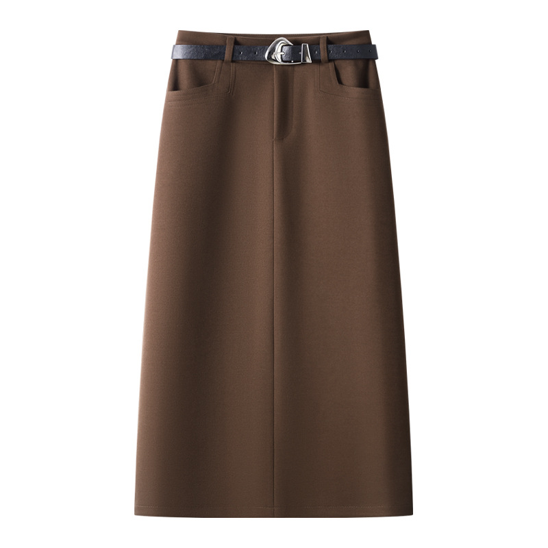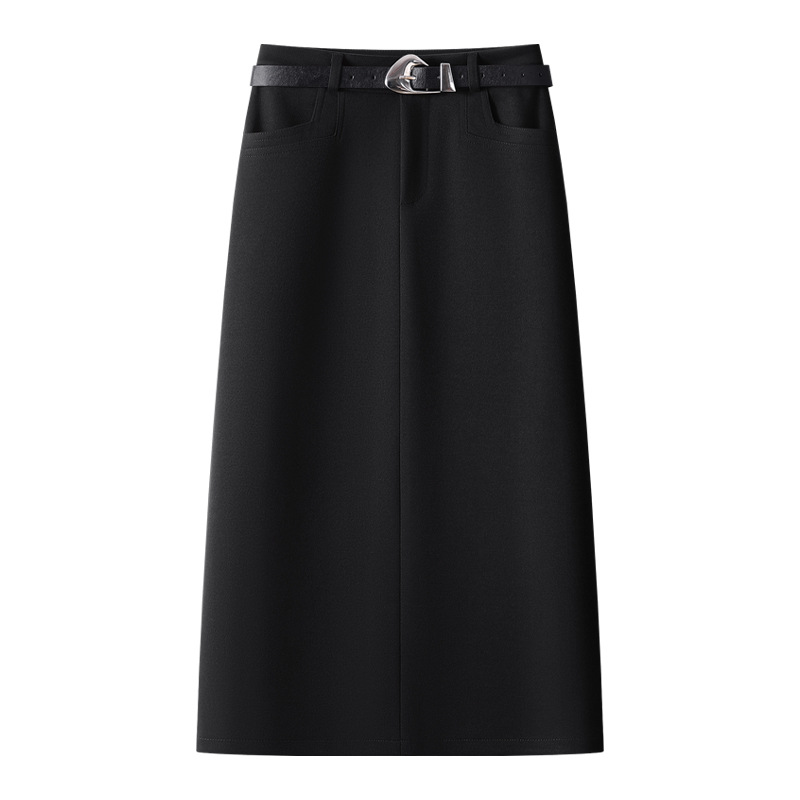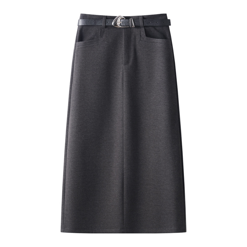 Главная страница > Элегантная серая шерстяная юбка для женщин, новинка осени-зимы 2025, прямая юбка-костюм с разрезом, юбка-карандаш, длинная юбка