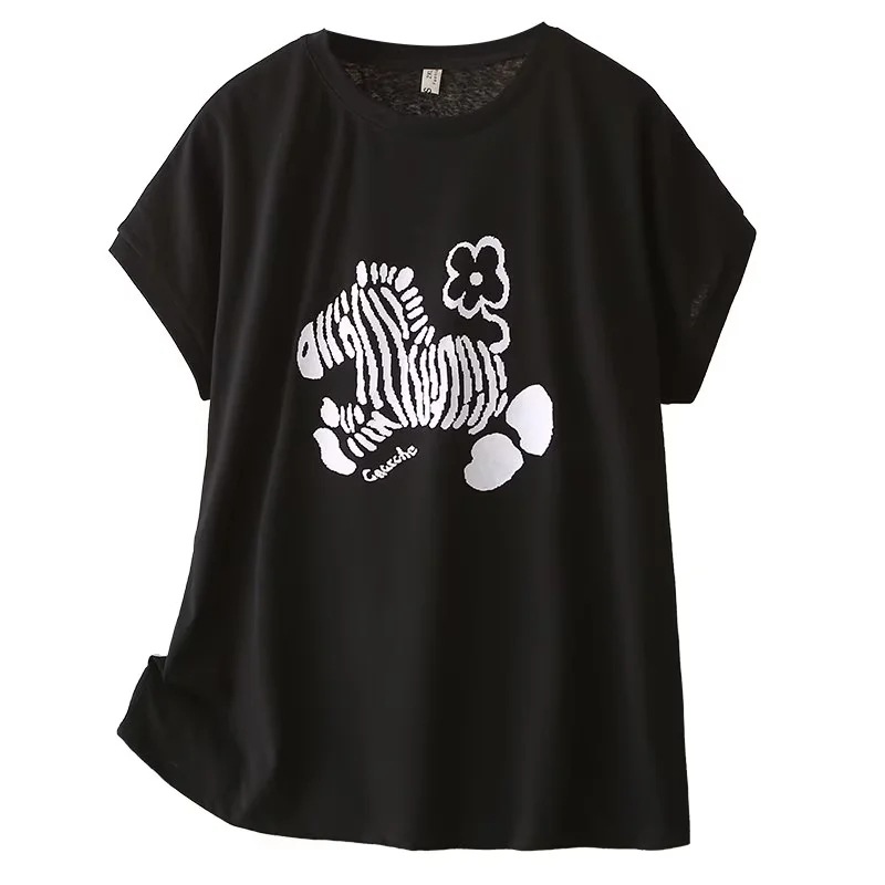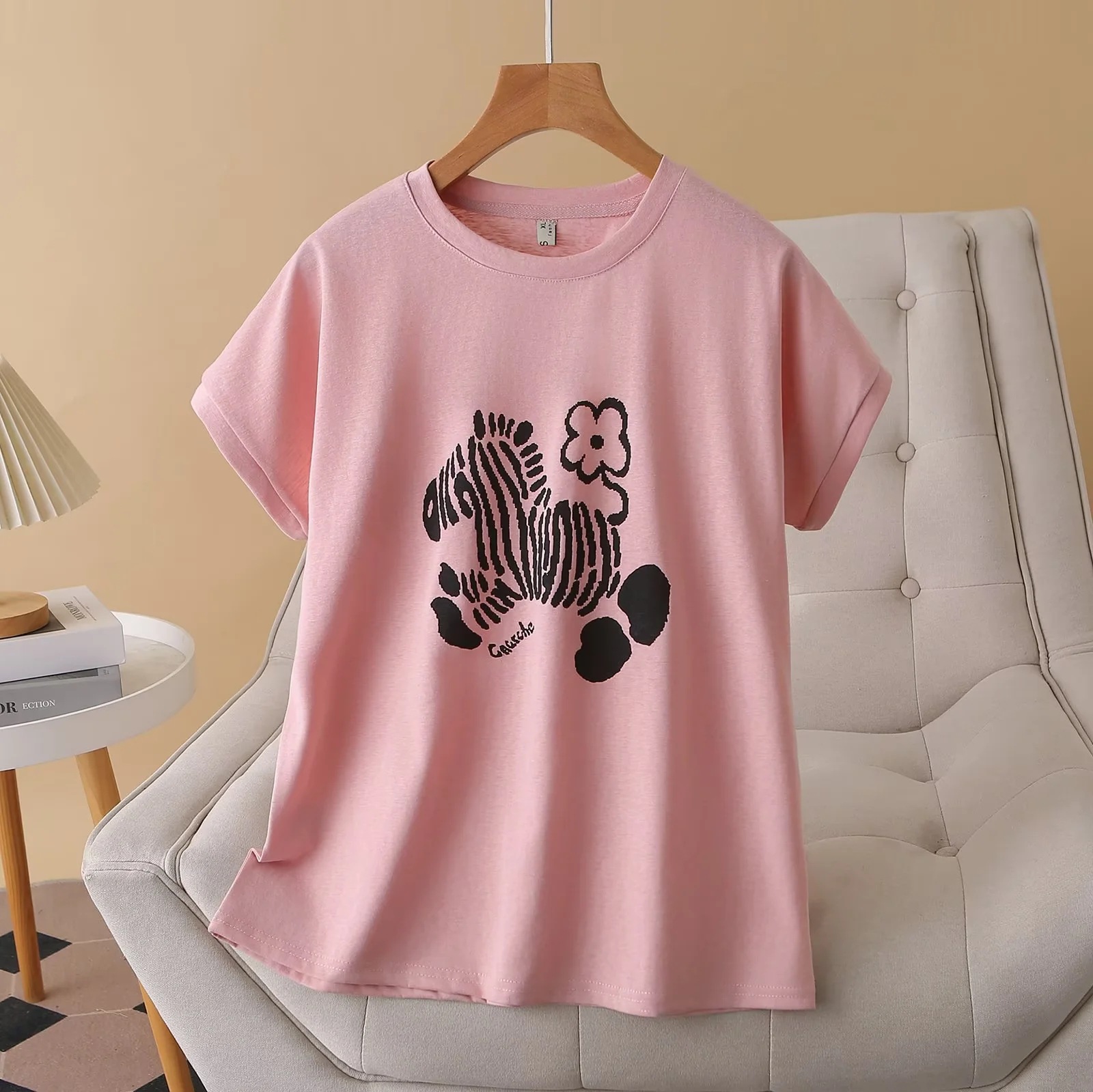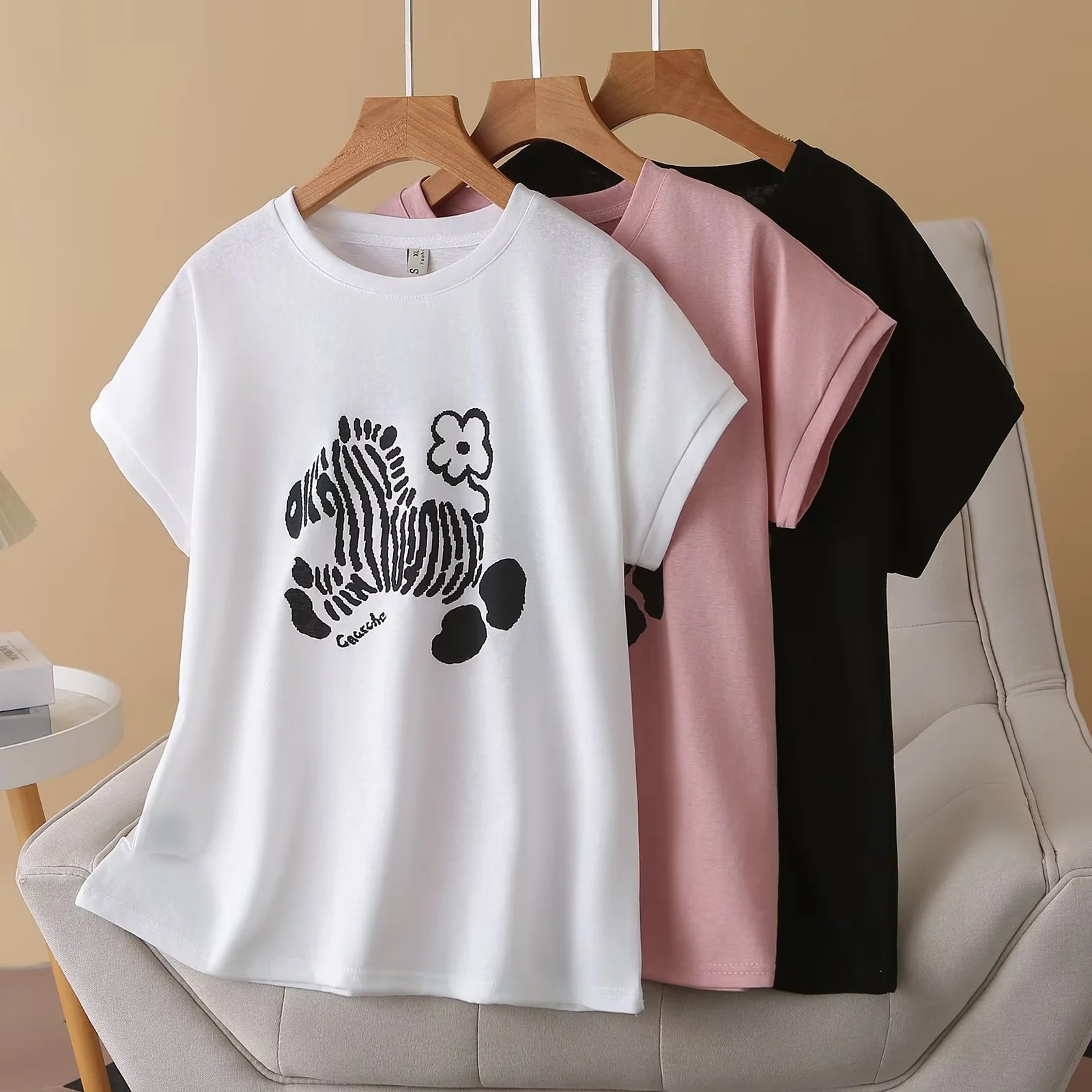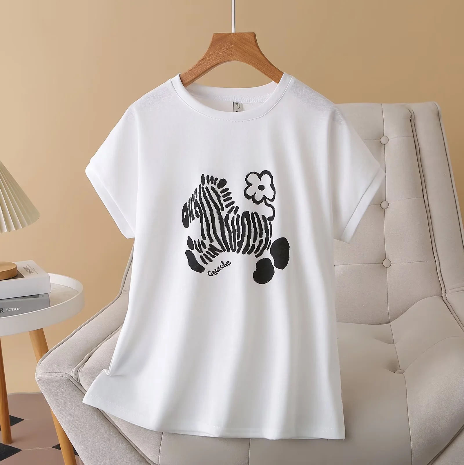 Главная страница > Женская футболка с коротким рукавом, круглым вырезом, хлопковая, с принтом снежинок и пони, размер М плюс, весна 2025, H71967
