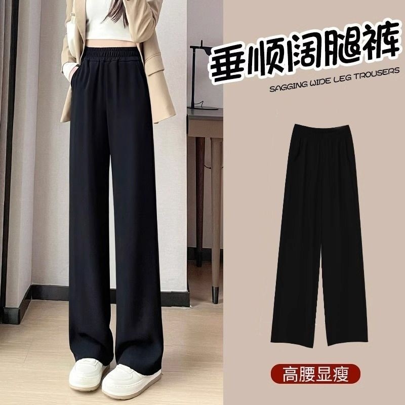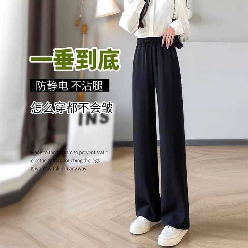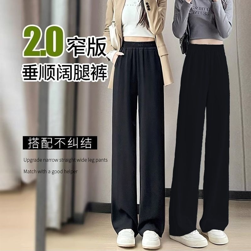 Главная страница > Новые крутые широкие брюки из шифона из ледяного шелка для женщин, летние тонкие узкие прямые брюки с высокой талией для миниатюрных женщин.