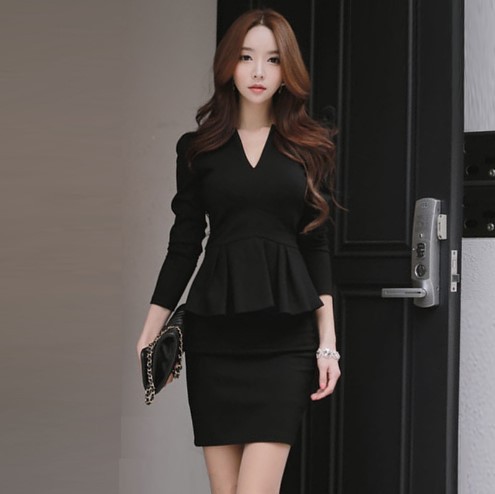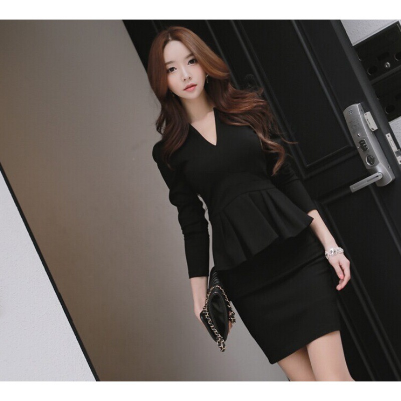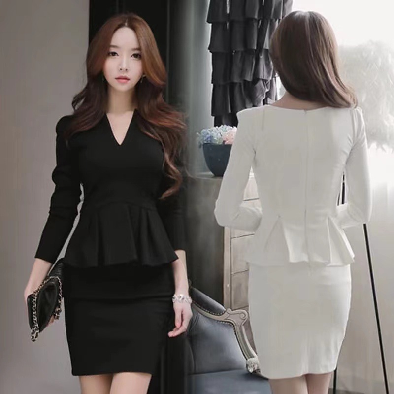 Главная страница > 2023 Весна и осень Деловая одежда в Корейском стиле Темперамент Поддельные из двух частей Сексуальное приталенное платье с V-образным вырезом и длинными рукавами 2663
