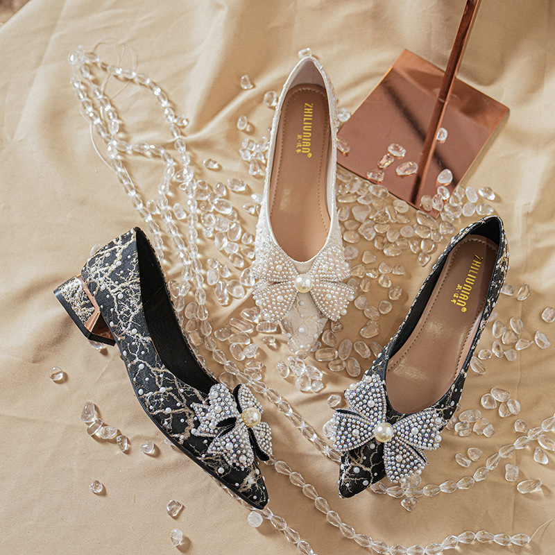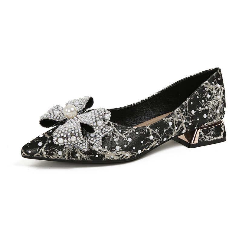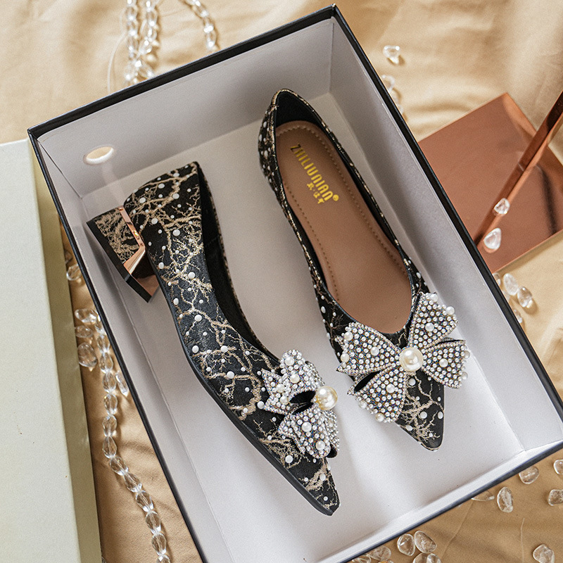 Главная страница > 666-6 осень 2023 новые одиночные туфли с четырехлистным клевером, женская модная женская обувь на толстом каблуке с острым горным хрусталем и французским средним каблуком