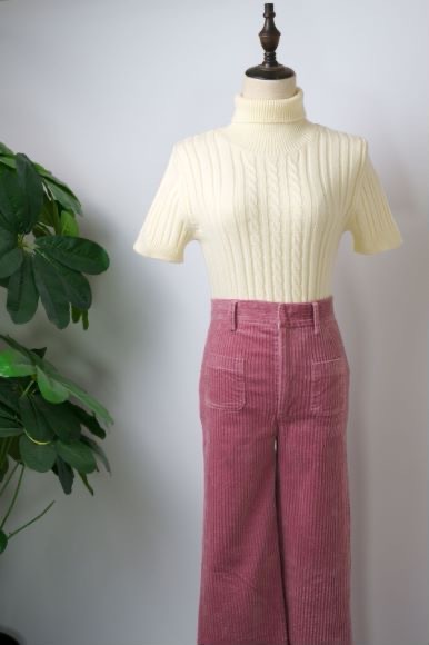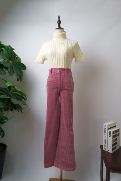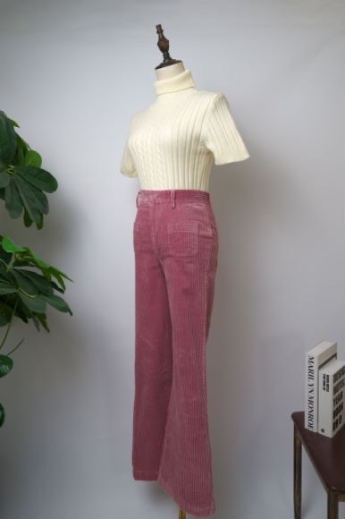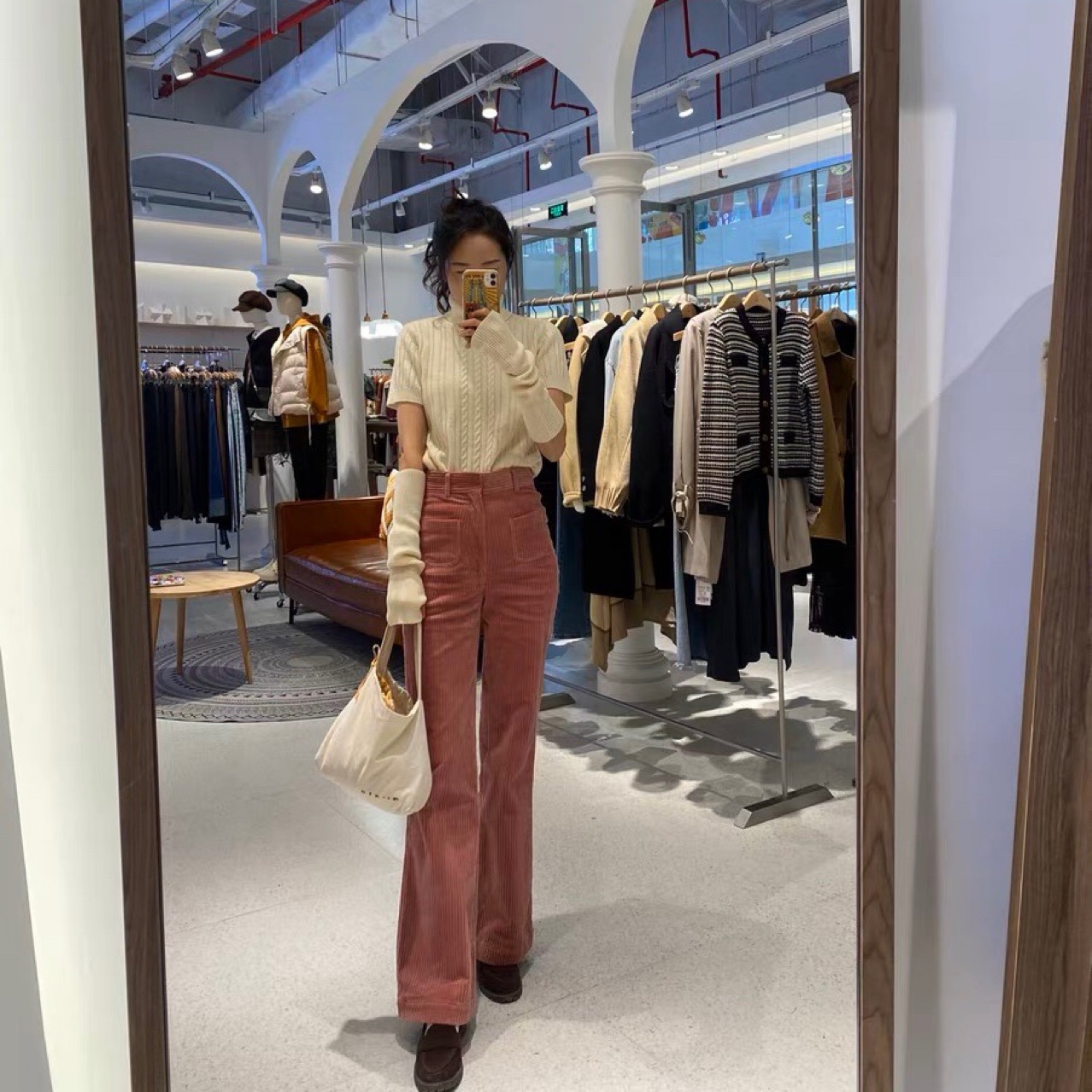 Главная страница > Большие ямочки ностальгические розовые вельветовые с высокой талией патч-сумка расклешенные брюки высокие повседневные брюки для похудения для женщин