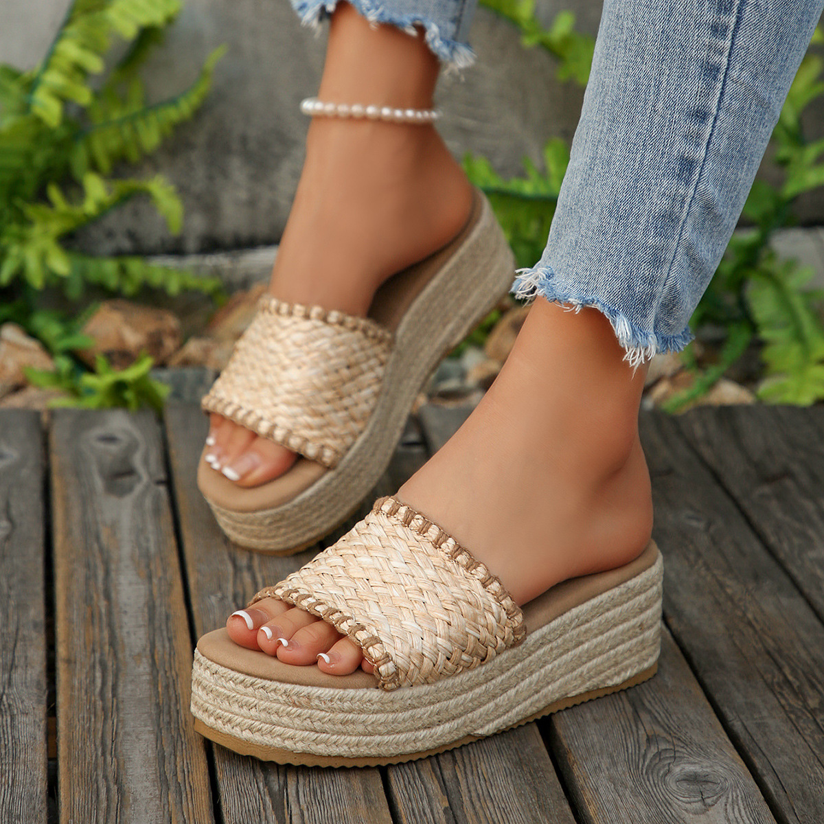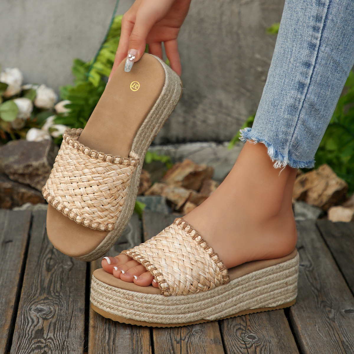 Главная страница > Женские летние ретро-шлепанцы на платформе с толстой подошвой, большие размеры, оптовая продажа за границу, коллекция 2025 года.
