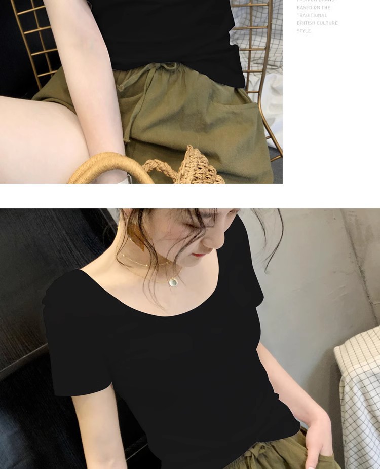 Главная страница > Белая футболка женская рубашка с коротким рукавом 2025 новый низкий воротник обтягивка с воротником
