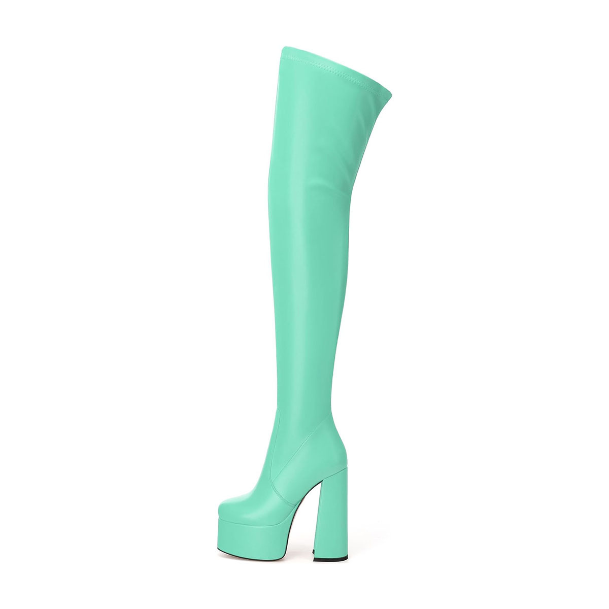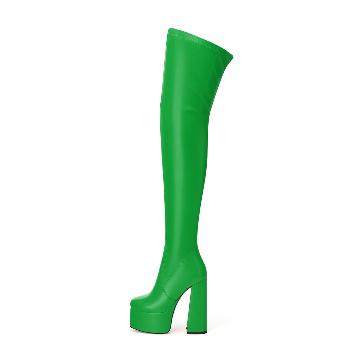 Главная страница > Трансграничная Внешняя торговля Модные Новые водонепроницаемые сапоги на толстой каблуке на платформе из лакированной кожи с круглым носком на высоком каблуке белые сапоги до колен больших размеров женские сапоги 45