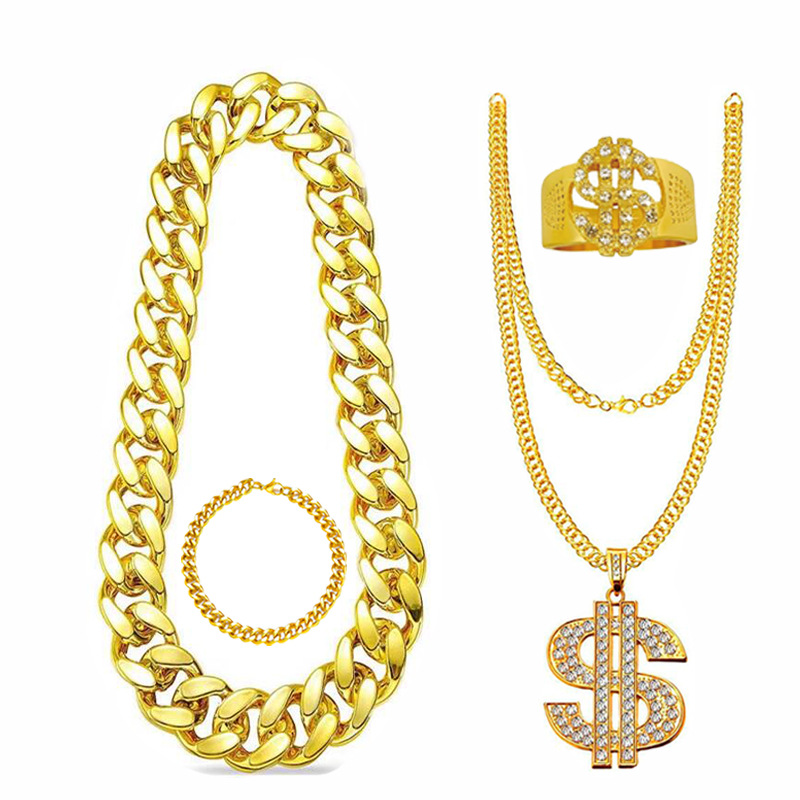 Толстое колье + браслет + широкое кольцо + ожерелье в долларах
