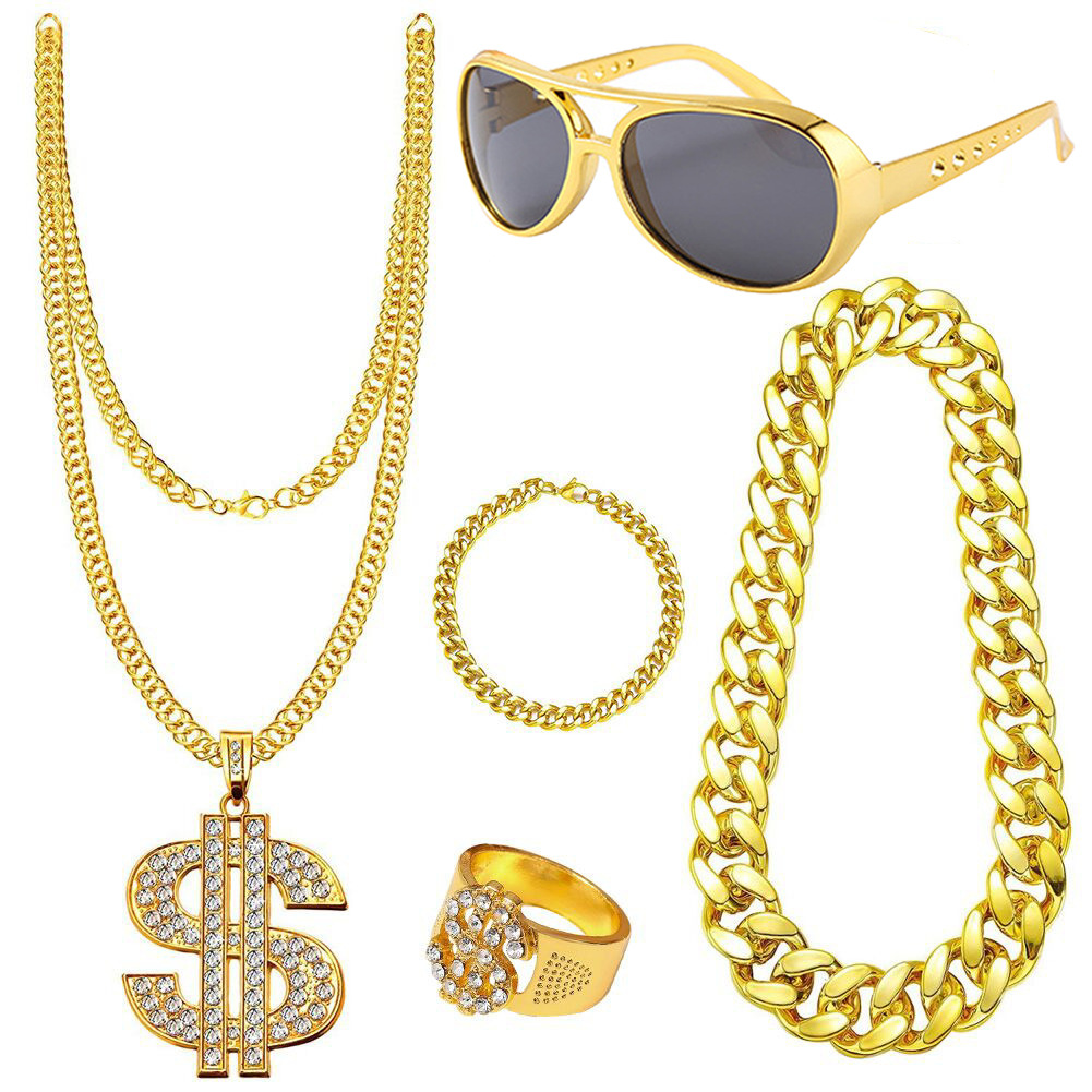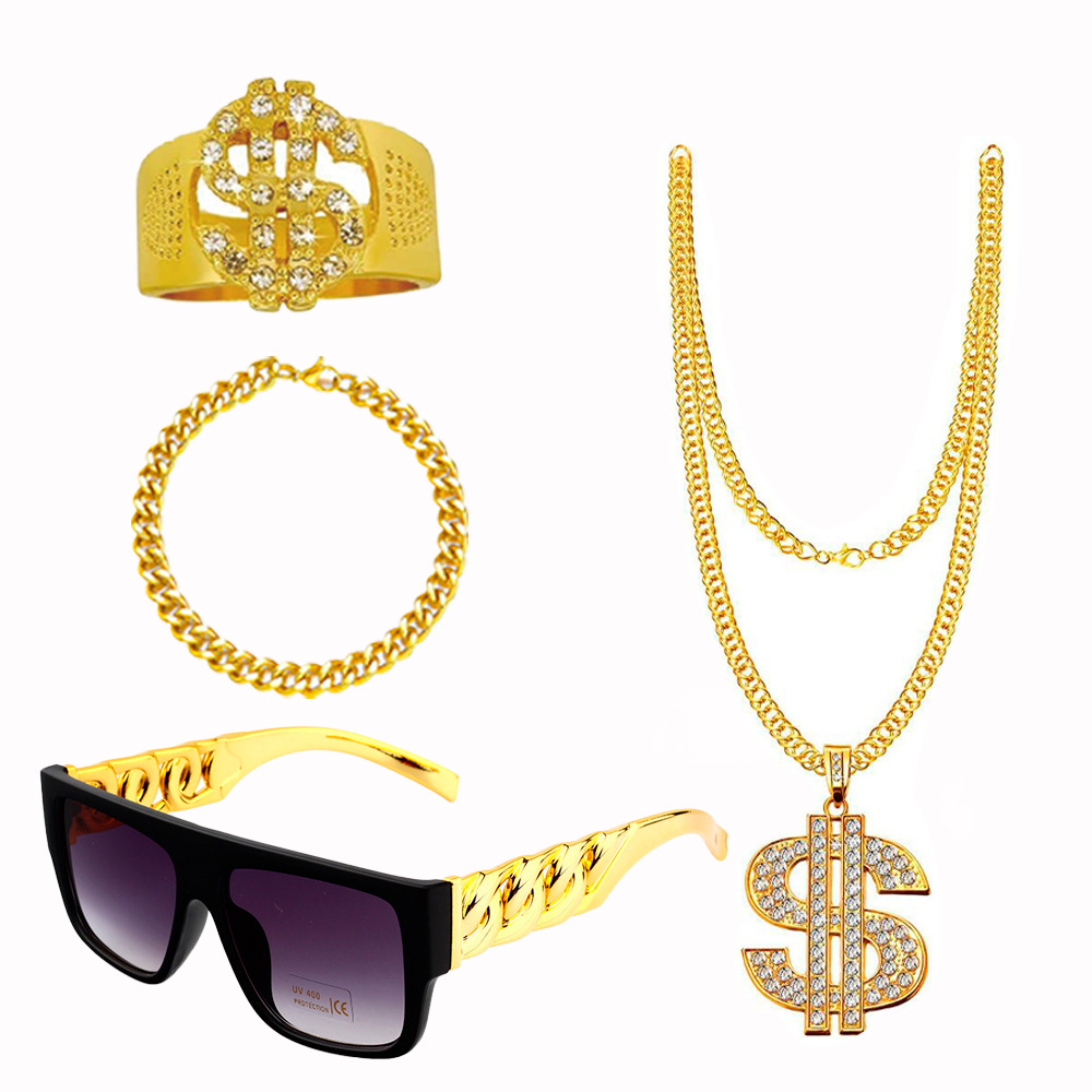 Толстое колье + фиолетовые очки + браслет + широкое кольцо в долларах США.