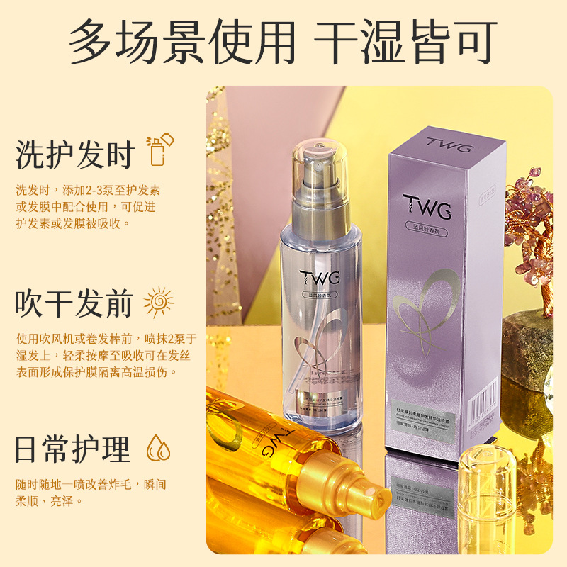 Главная страница > TWG Духи блестящий крем для волос Спрей масло спрей для предотвращения вьющихся волос и мягкости