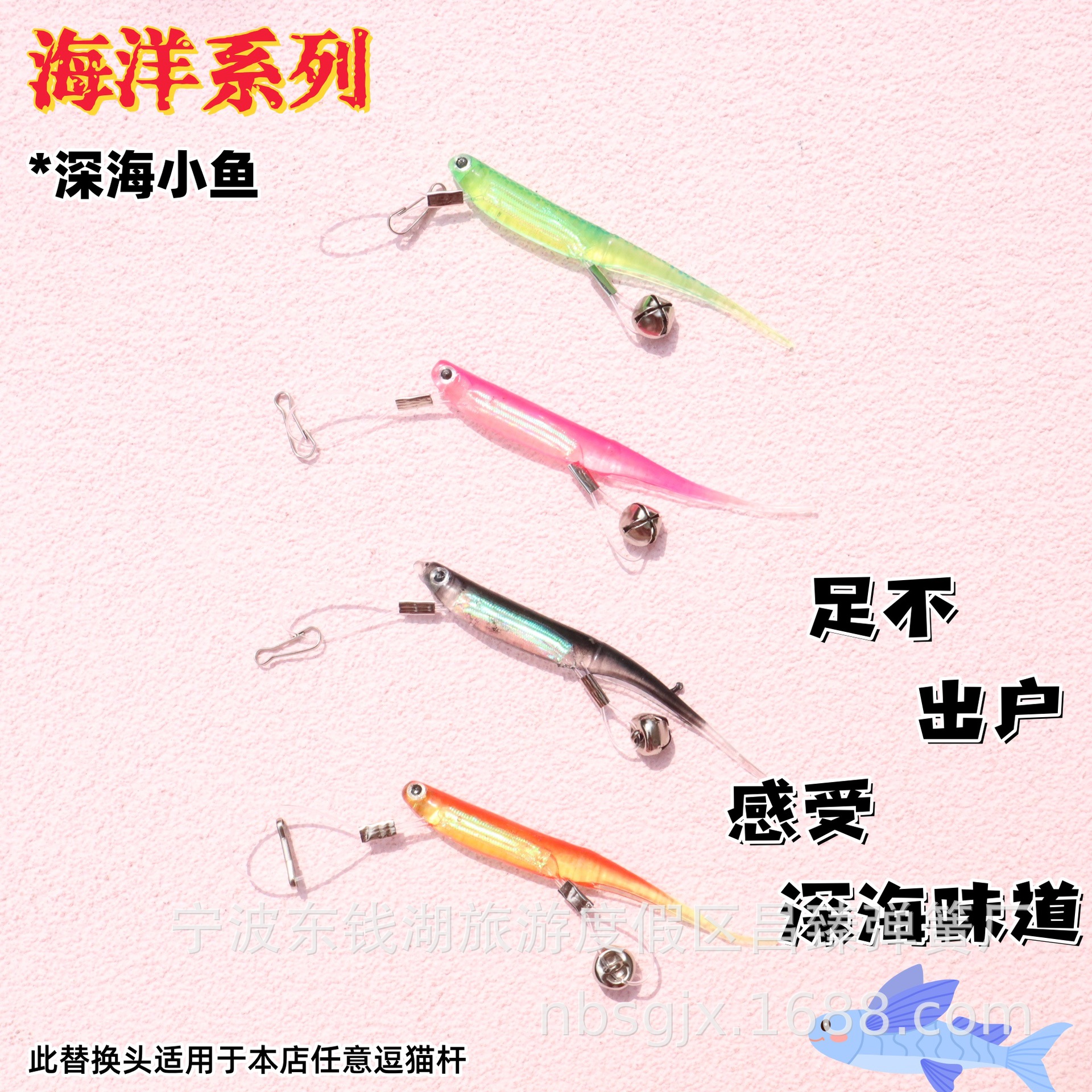 Новая глубоководная серия, имитирующая маленькую рыбку, силиконовая палочка-дразнилка для кошек, сменная повязка на голову с крючком-колокольчиком, устойчивая к царапинам игрушка для кошек.