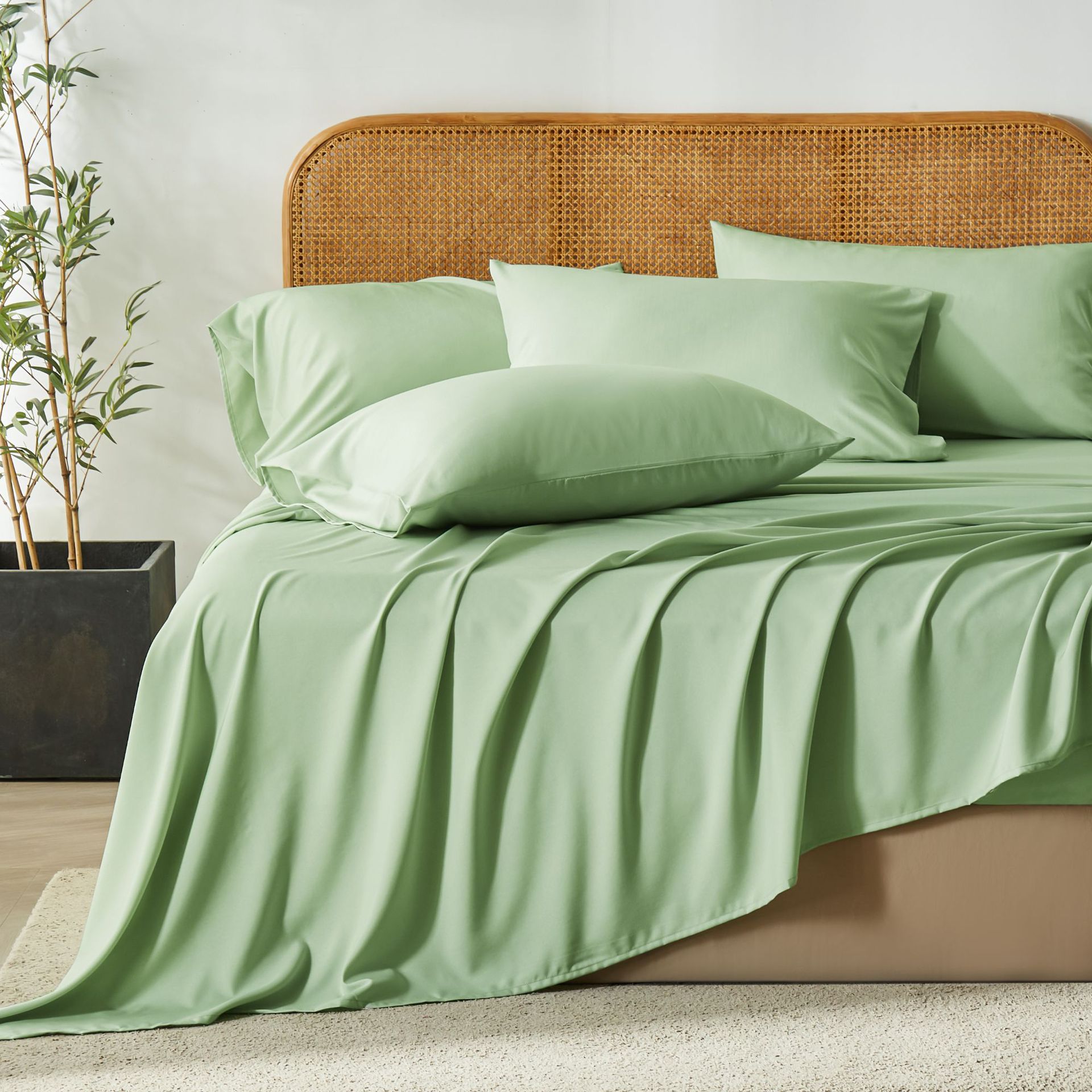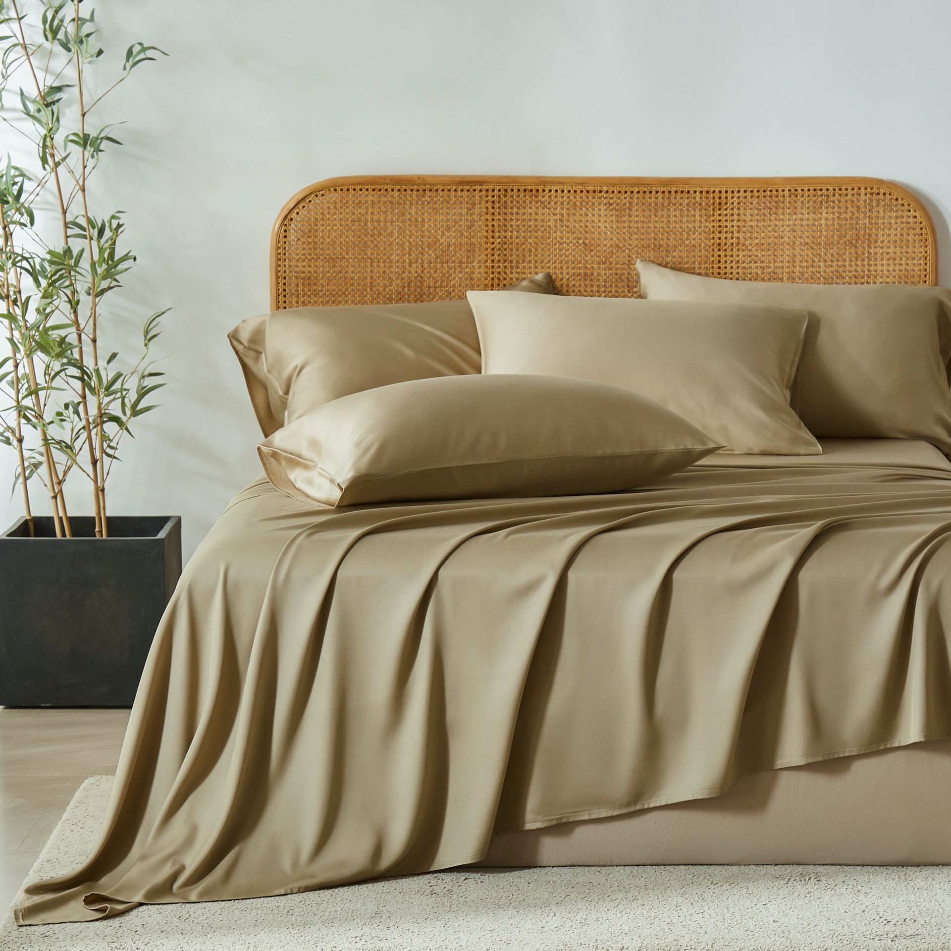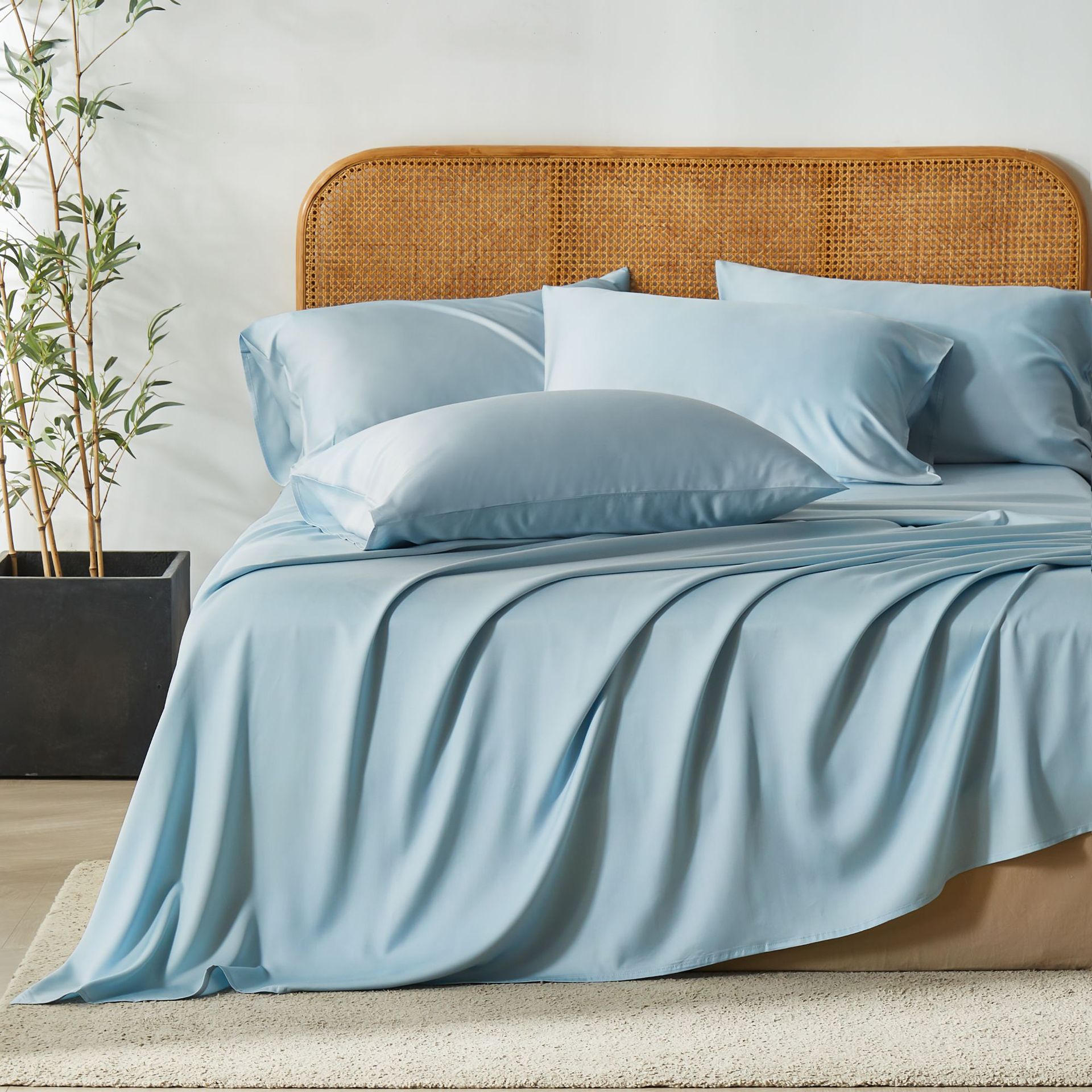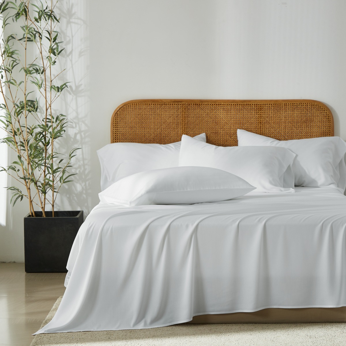 Постельный комплект из 4 предметов: простыня, две наволочки, 40% бамбуковое волокно, 60% полиэстер, доступная роскошь.
