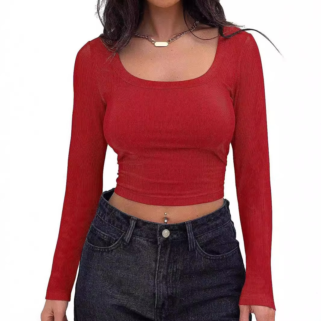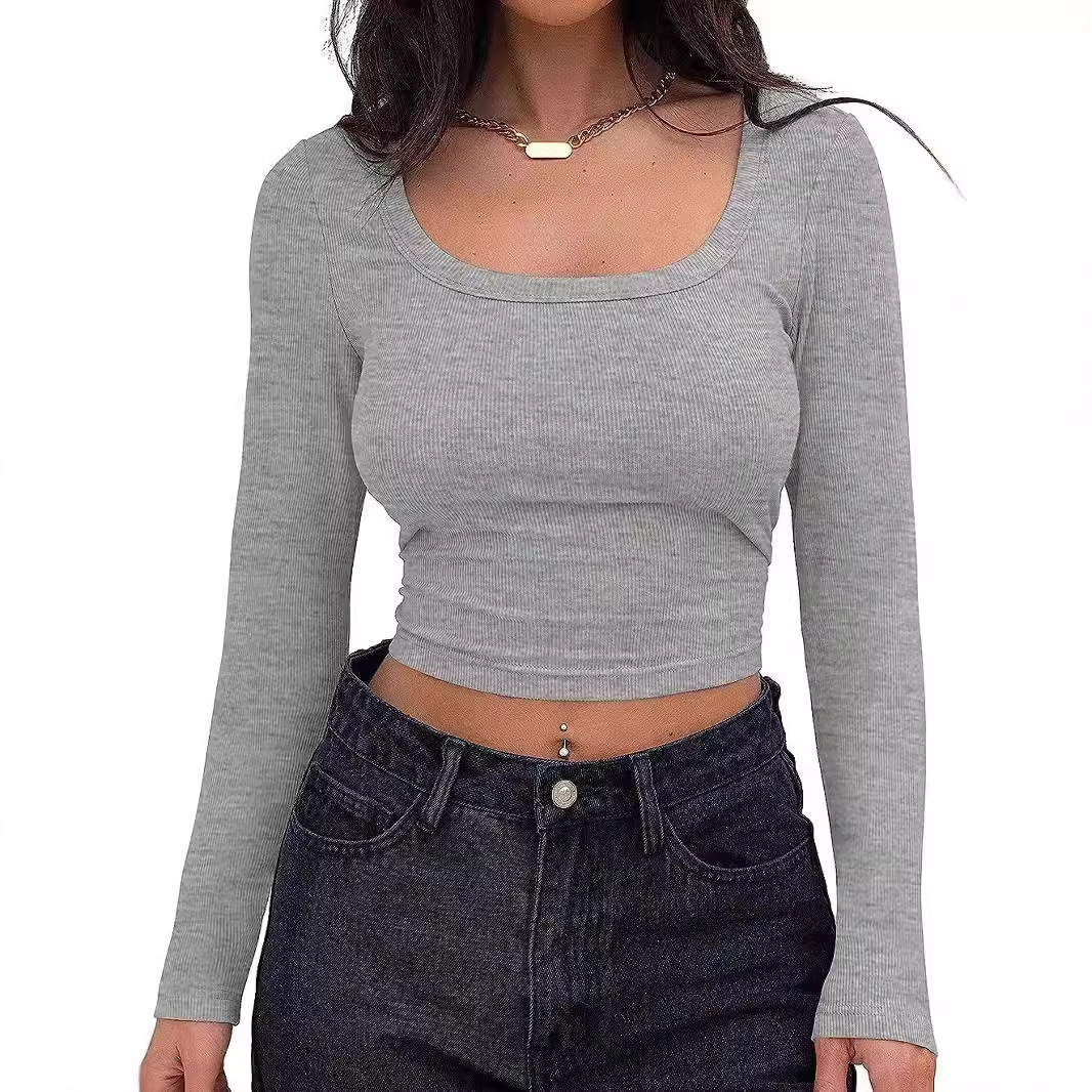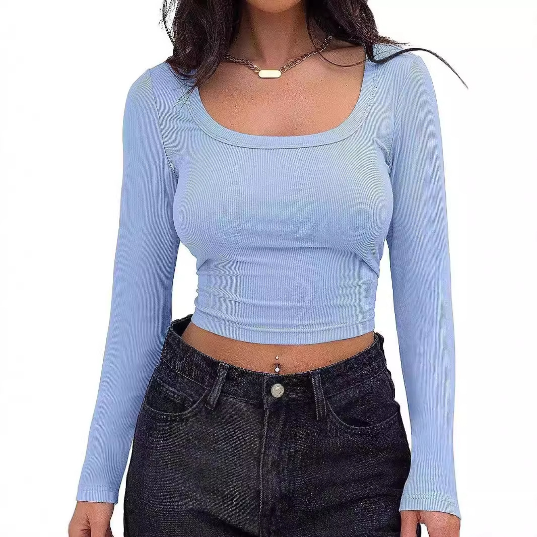 Главная страница > 2025 Amazon новые европейские и американские взрывные ямы с резьбой тонкая короткая футболка с длинными рукавами квадратного воротника женская трансграничная внешняя торговля