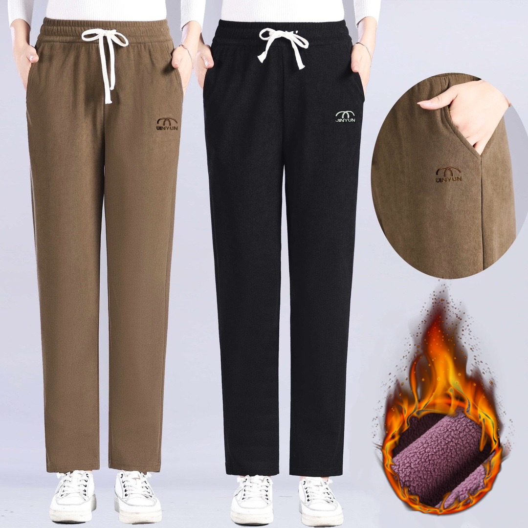 Главная страница > Новые осенне-зимние брюки для женщин среднего и старшего возраста, повседневные брюки для мам, с высокой талией и эластичным поясом, свободные вельветовые брюки больших размеров, производитель Иу