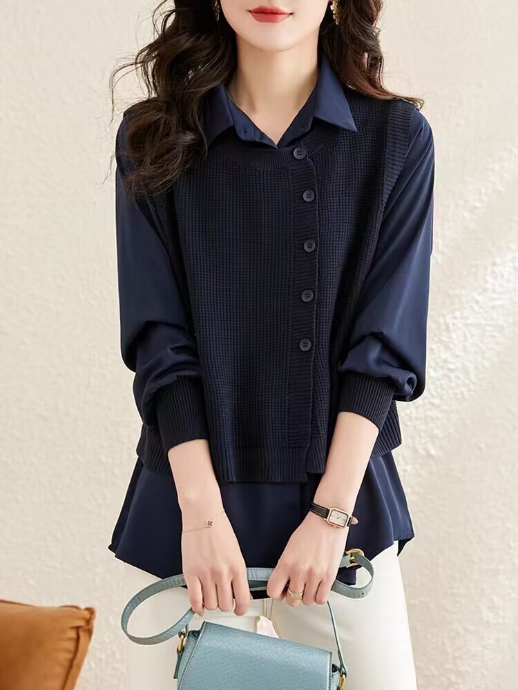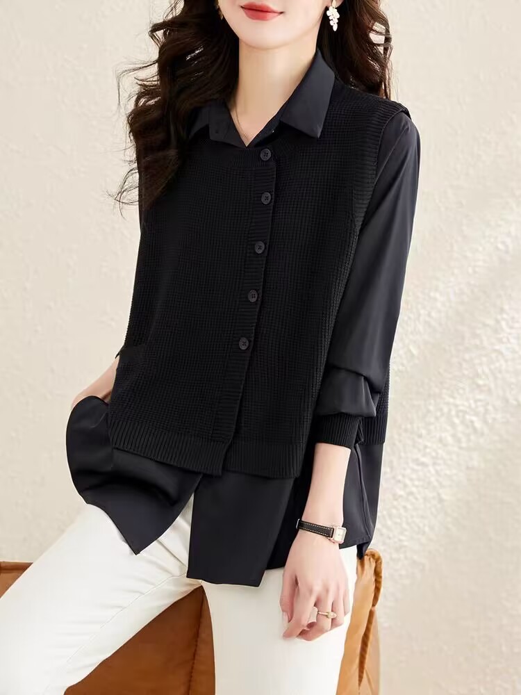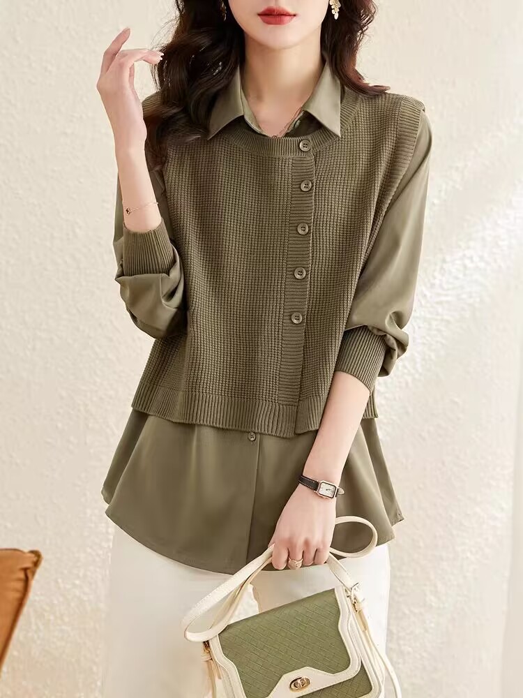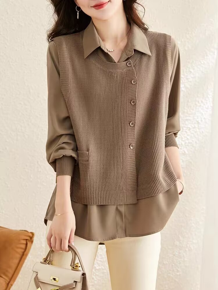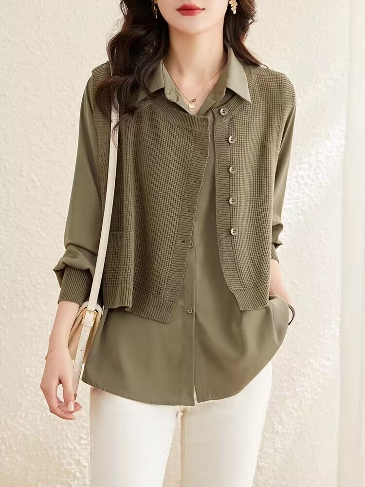 Главная страница > Комплект из двух предметов для женщин: рубашка и жилет, новинка осени 2024, свободная повседневная рубашка-жакет, стильный вязаный жилет, топ с длинным рукавом