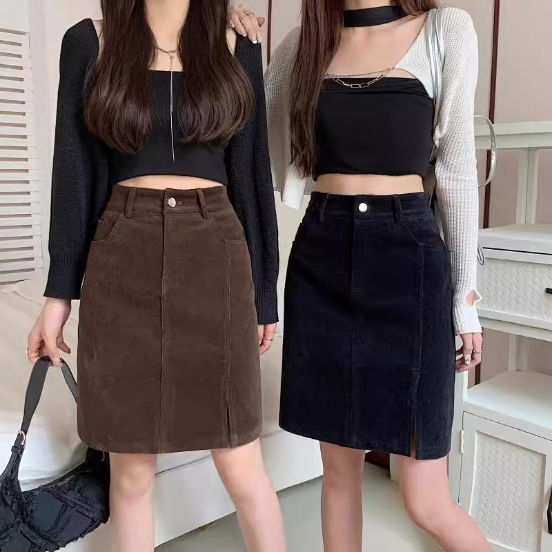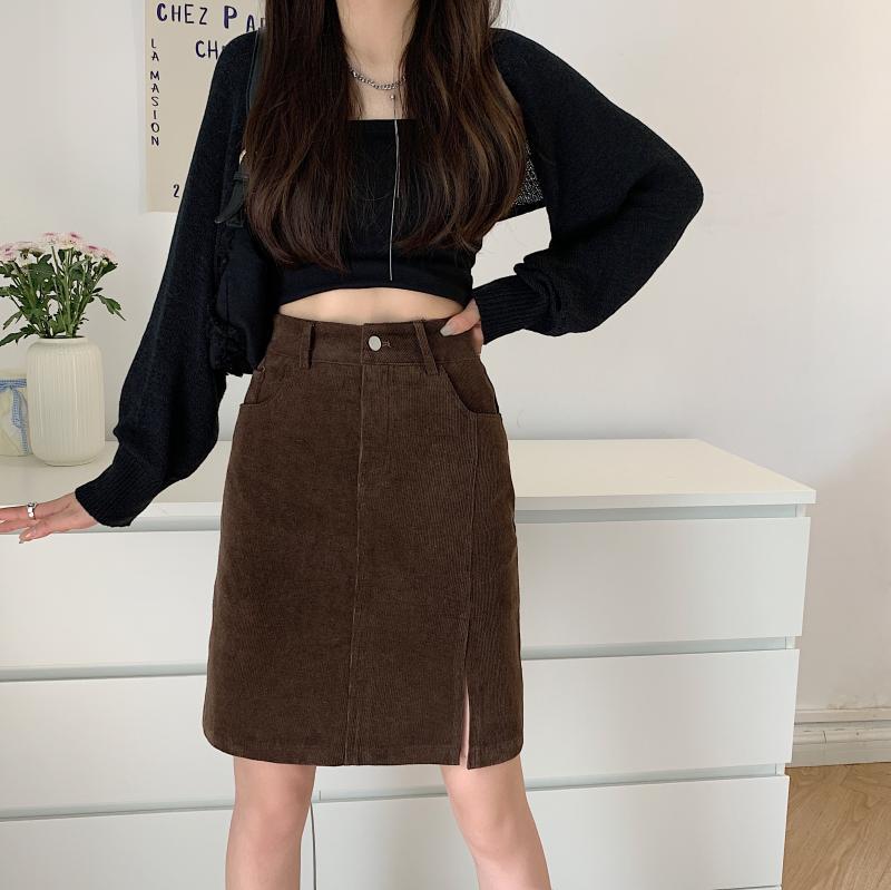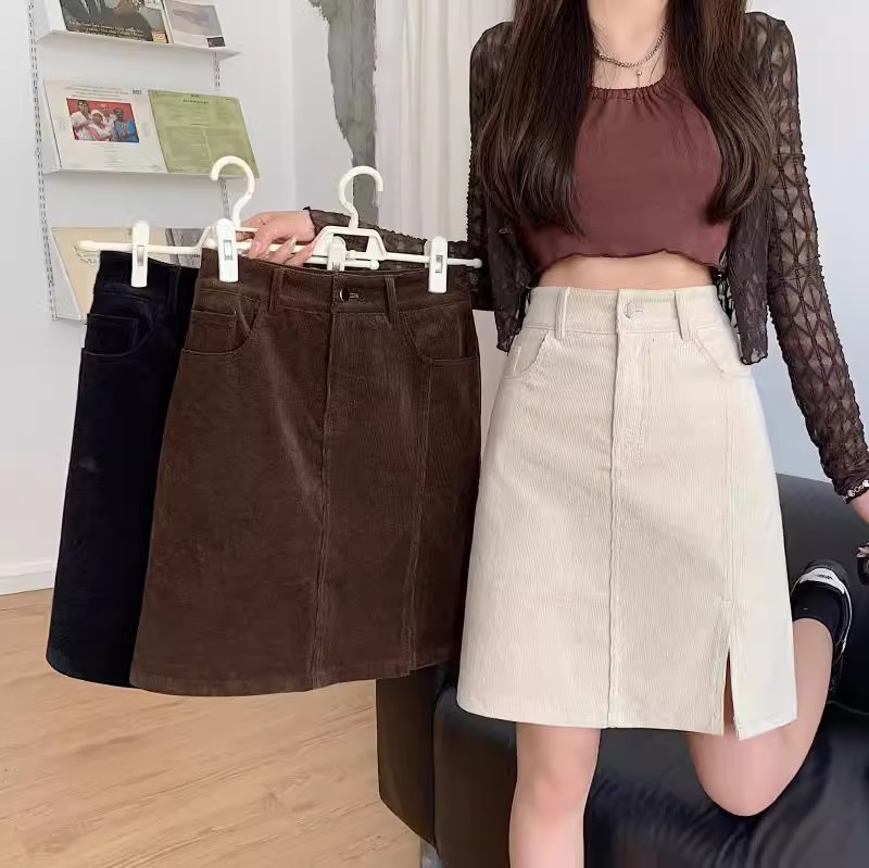 Главная страница > Вельветовая юбка среднего и длинного размера для детей осенью и зимой с высокой талией